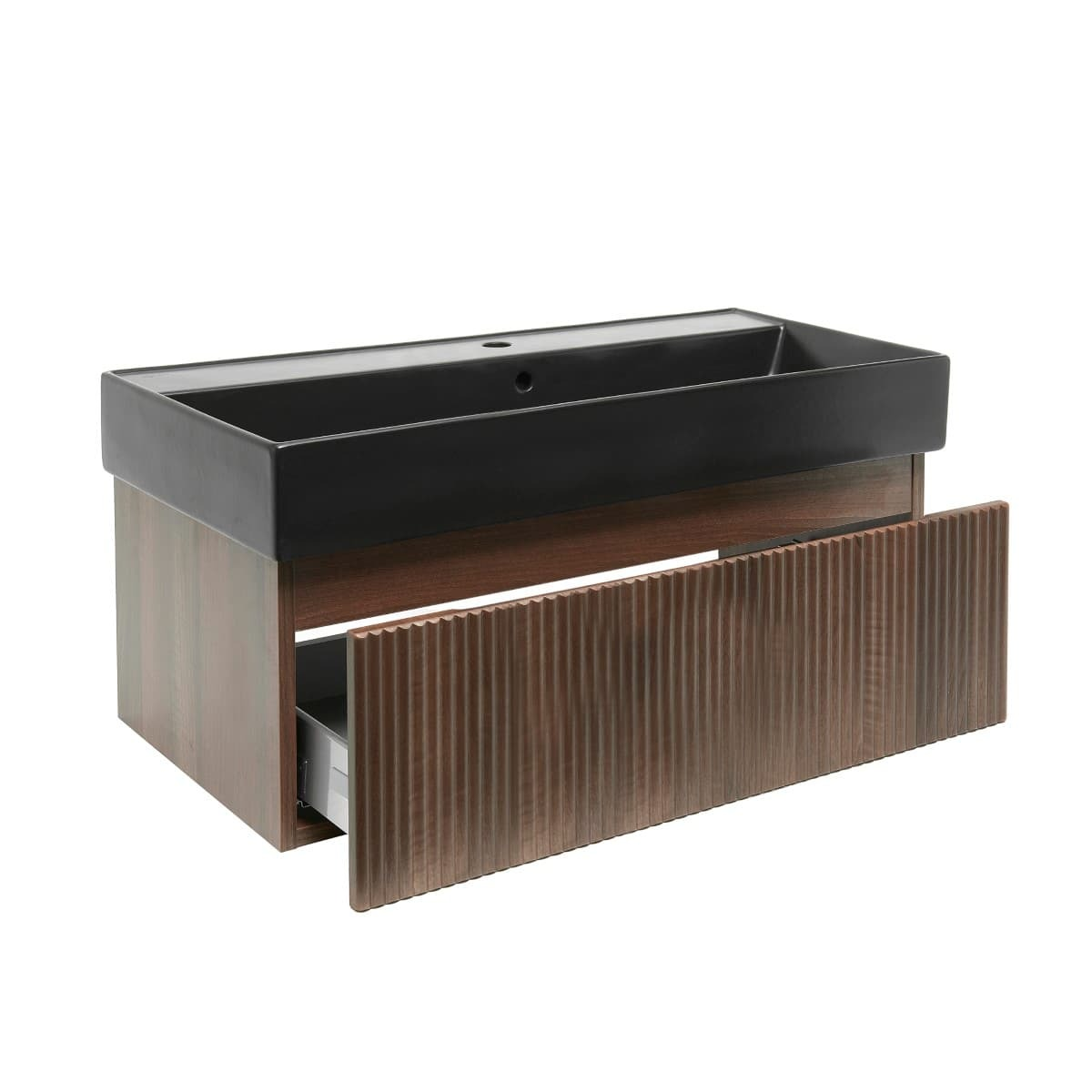 Le meuble de salle de bain SAT Evolution est doté de fraisages verticaux luxueux qui apportent un élément d'élégance unique à la salle de bain.