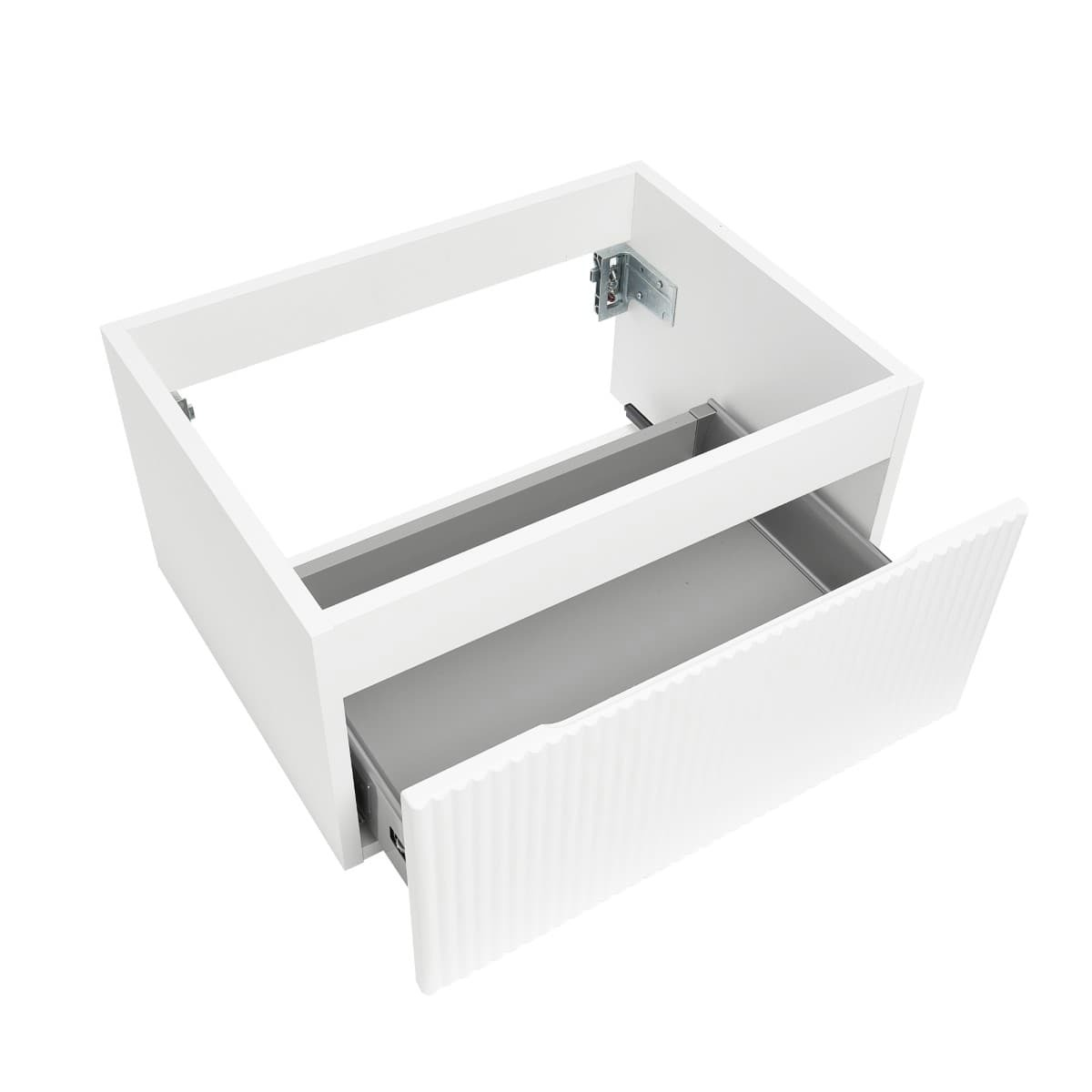 Le meuble est conçu dans un souci de praticité et d'esthétique dans la salle de bain. Le tiroir peut être ouvert en haut ou en bas de la façade du tiroir et offre ainsi un accès pratique à l'espace de rangement.