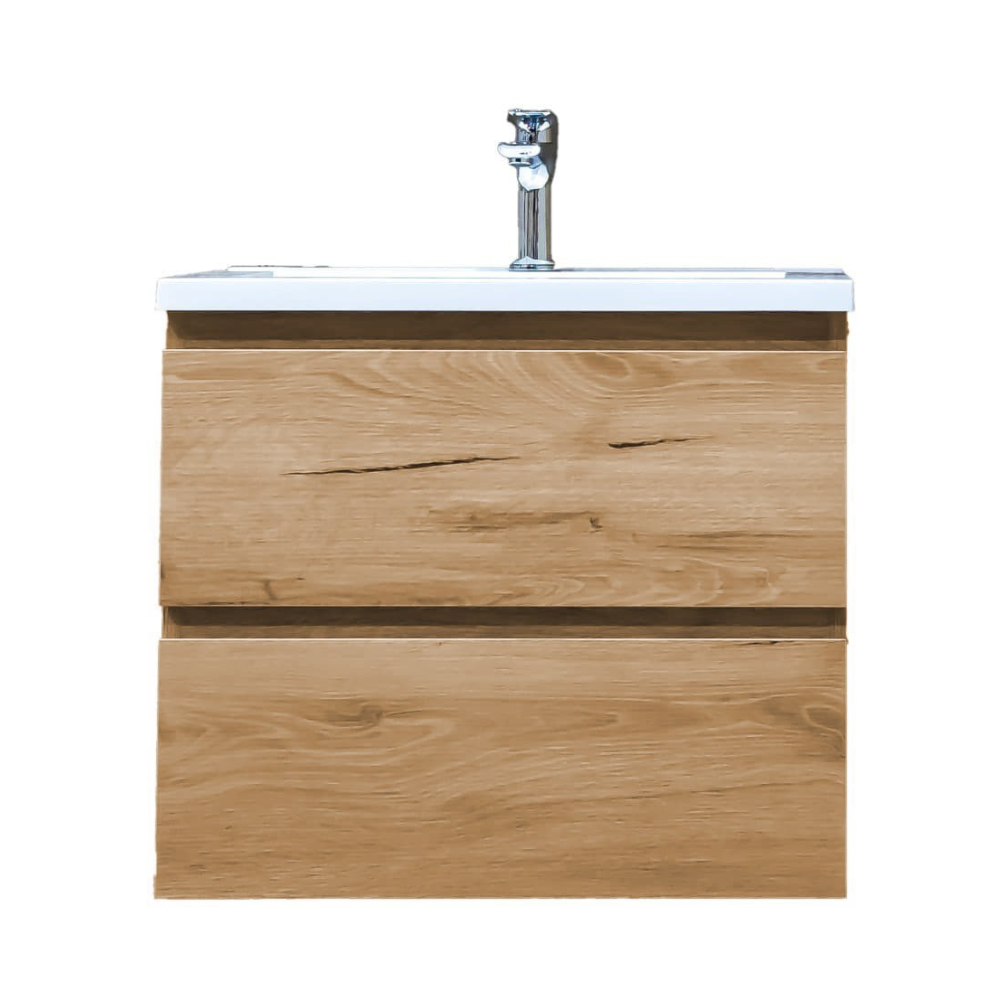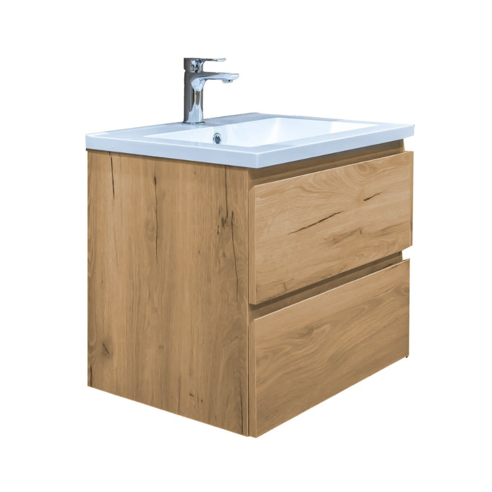 Swiss Aqua Technologies B-Way 59x50x45 cm meuble de salle de bain suspendu 2 tiroirs avec lavabo en marbre coulé, chêne mat (BWAY260OAKU)