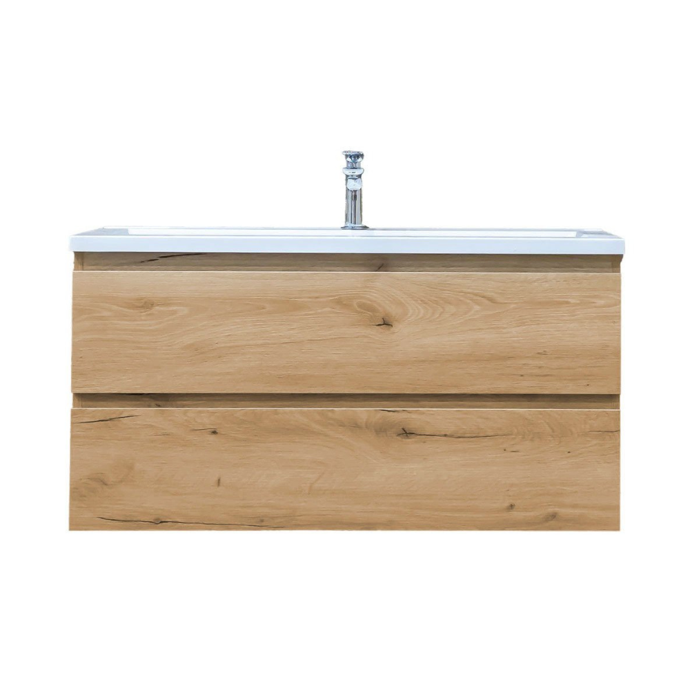 Swiss Aqua Technologies B-Way 99x50x45 cm meuble salle de bain suspendu 2 tiroirs avec lavabo en marbre coulé, chêne mat (BWAY2100OAKU)