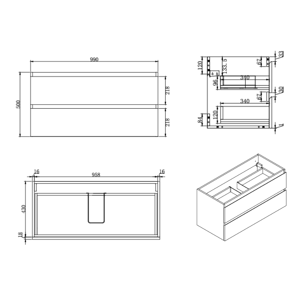 Caractéristiques du meuble de salle de bain suspendu 99x50x45 cm, 2 tiroirs avec lavabo en marbre coulé, Swiss Aqua Technologies B-Way, chêne mat (BWAY2100OAKU) :