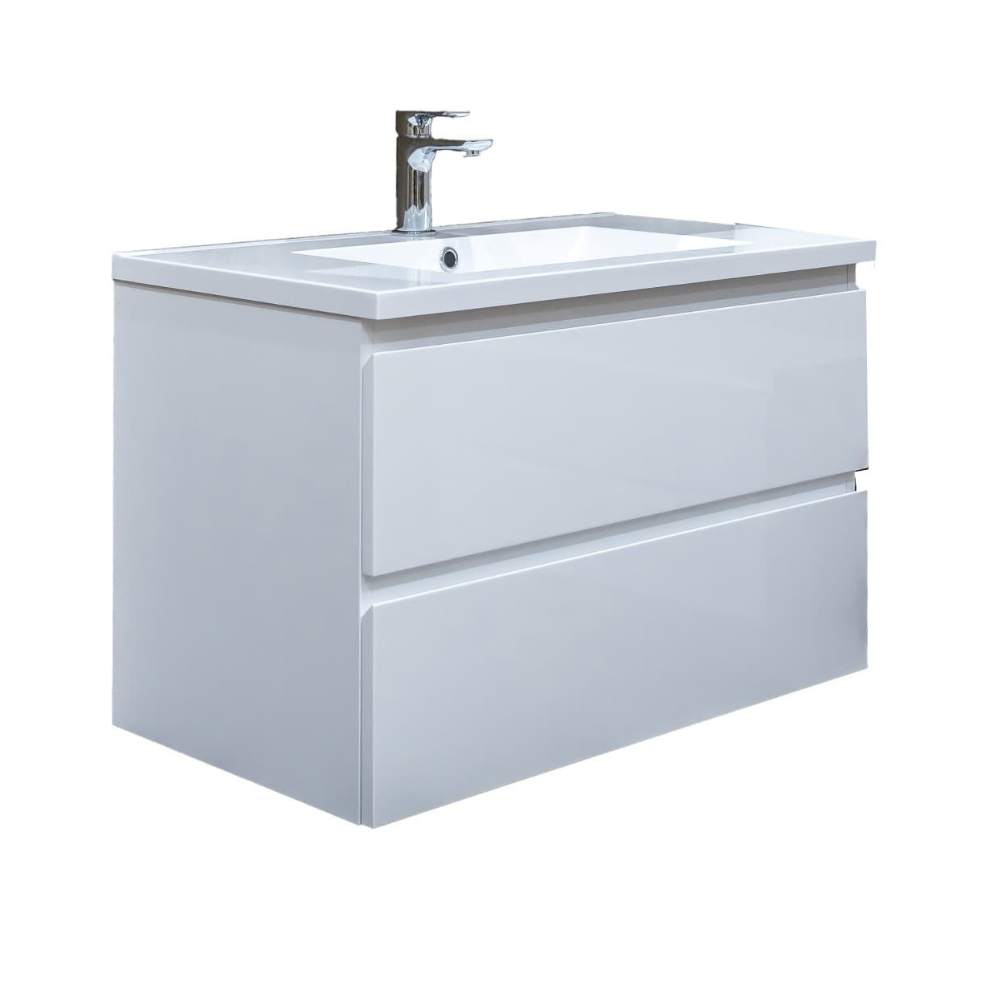 Swiss Aqua Technologies B-Way 79x50x45 cm meuble de salle de bain suspendu avec lavabo en marbre coulé, 2 tiroirs, blanc brillant (BWAY280WU)