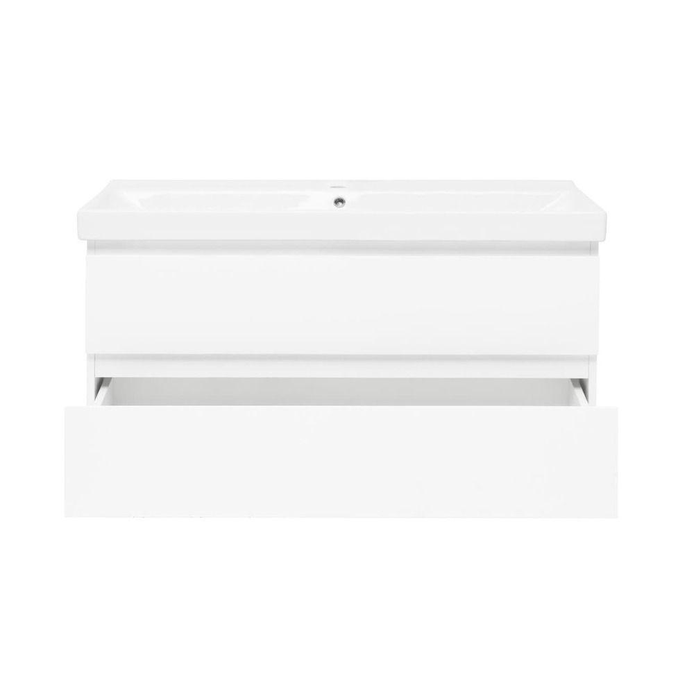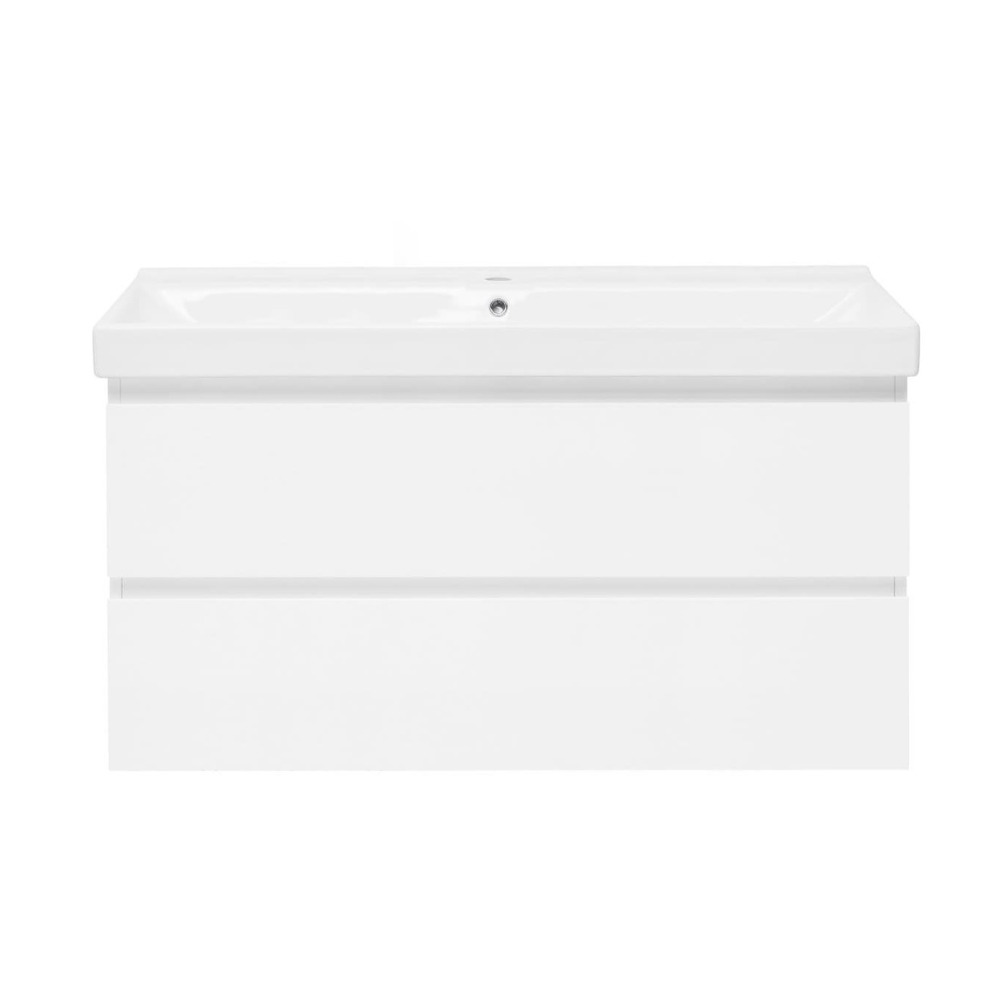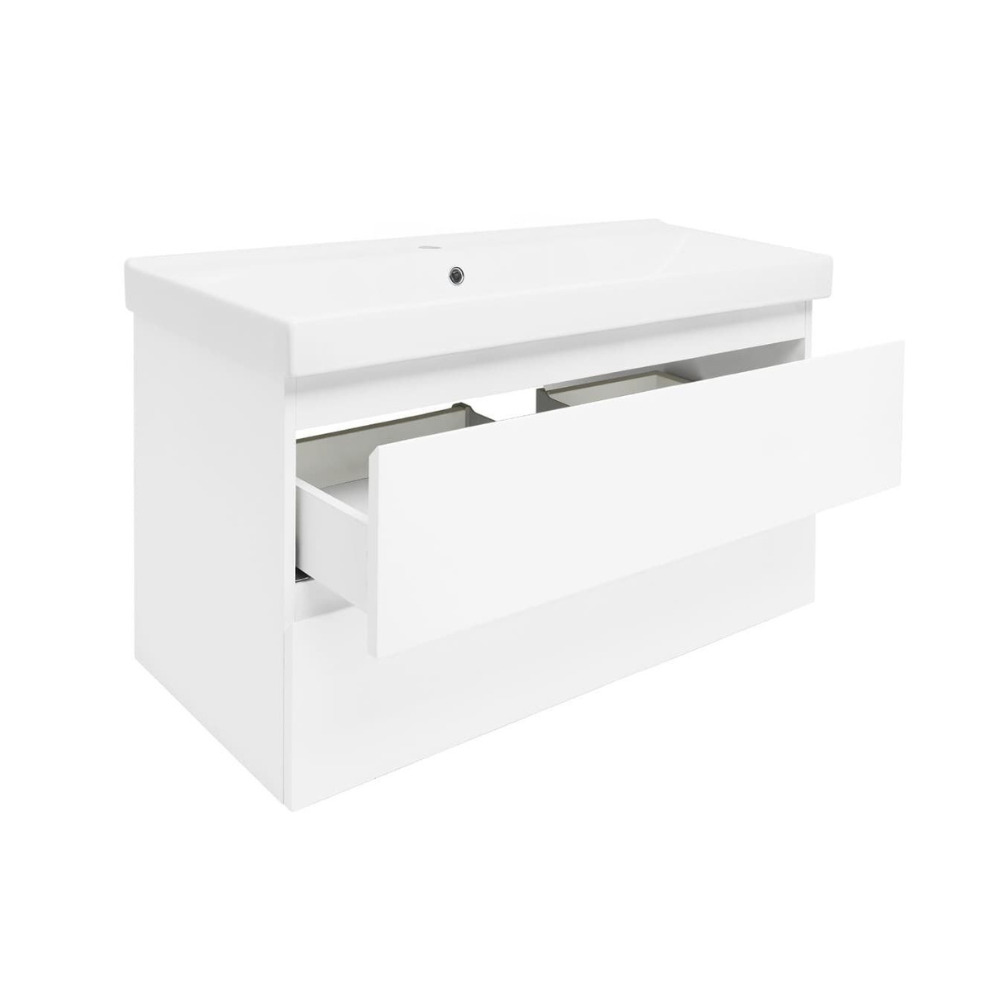 Swiss Aqua Technologies B-Way 99x50x45 cm meuble de salle de bain suspendu 2 tiroirs avec lavabo en céramique, blanc brillant(BWAY2100WU1BI)