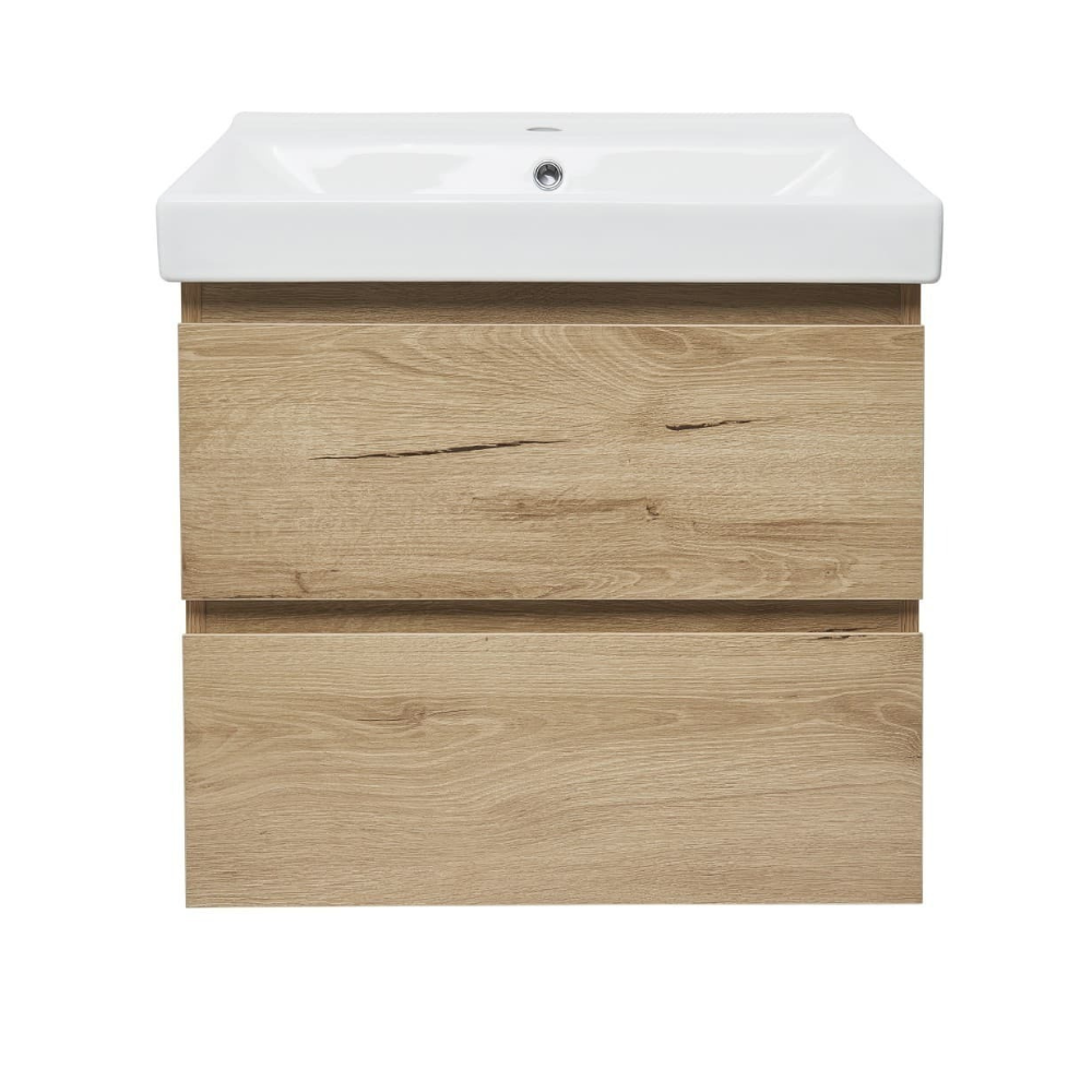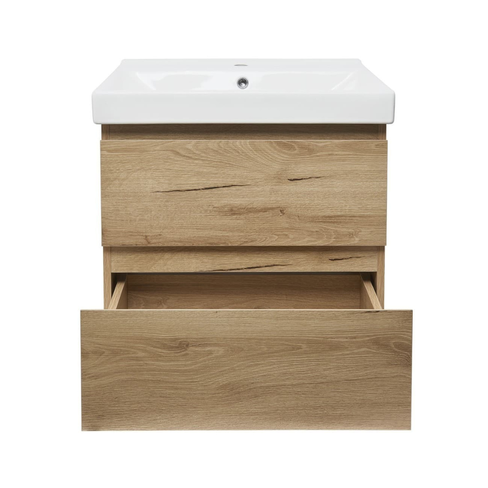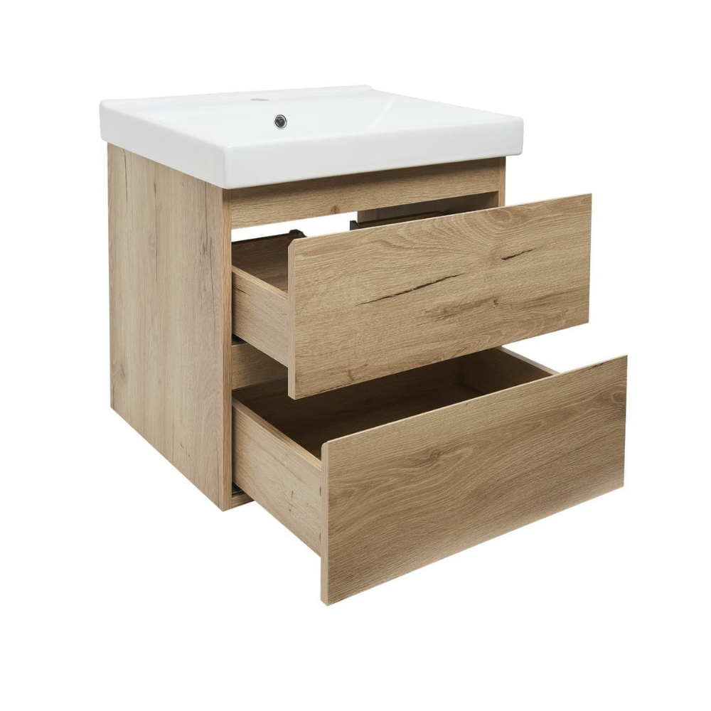 Swiss Aqua Technologies B-Way 59x50x45 cm meuble de salle de bain suspendu 2 tiroirs avec lavabo en céramique, chêne mat (BWAY260OAKUU1)