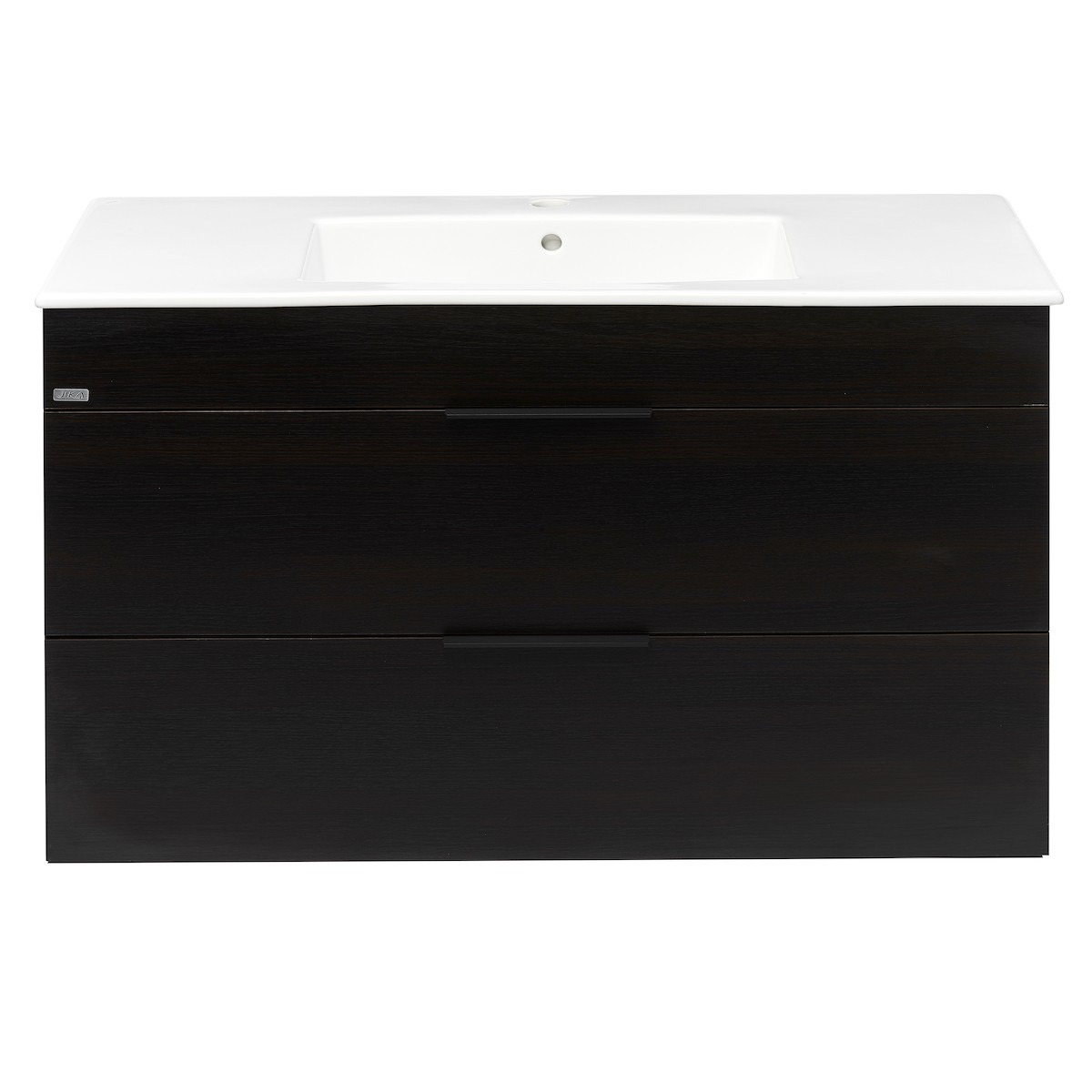 Laissez-vous séduire par le Meuble de salle de bain chêne 2 tiroirs 98x42.2x62.2cm + Lavabo en céramique blanche et trop plein, Jika Cube (H4536521763021).
