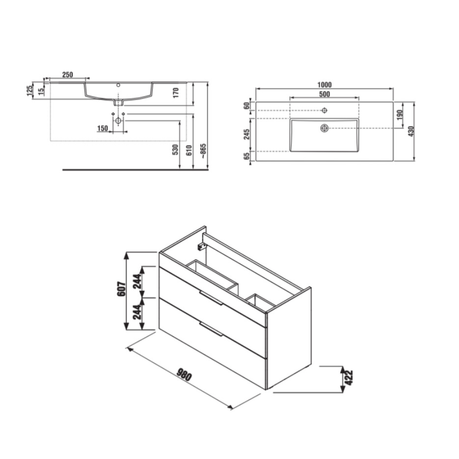 Caractéristiques du Meuble de salle de bain chêne 2 tiroirs 98x42.2x62.2cm + Lavabo en céramique blanche et trop plein, Jika Cube (H4536521763021) :
