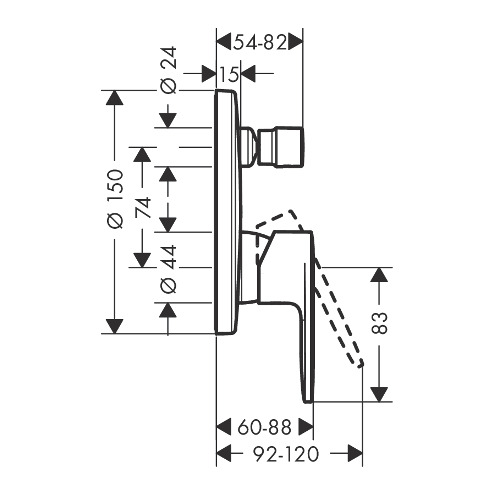 Caractéristiques du Set de finition pour mitigeur bain/ douche encastré, Chrome, Hansgrohe Vernis Blend (71466000) :
