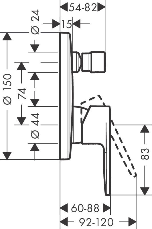 Caractéristiques du Set de finition pour mitigeur bain/ douche encastré, Noir mat, Hansgrohe Vernis Blend (71466670) :