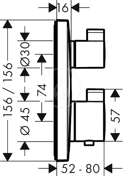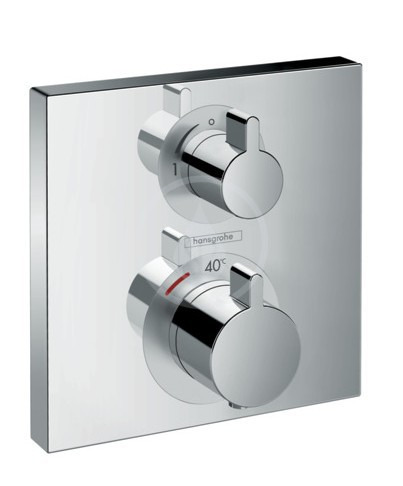 Hansgrohe Ecostat Square Set de finition pour mitigeur thermostatique Square encastré avec robinet d'arrêt, chromé