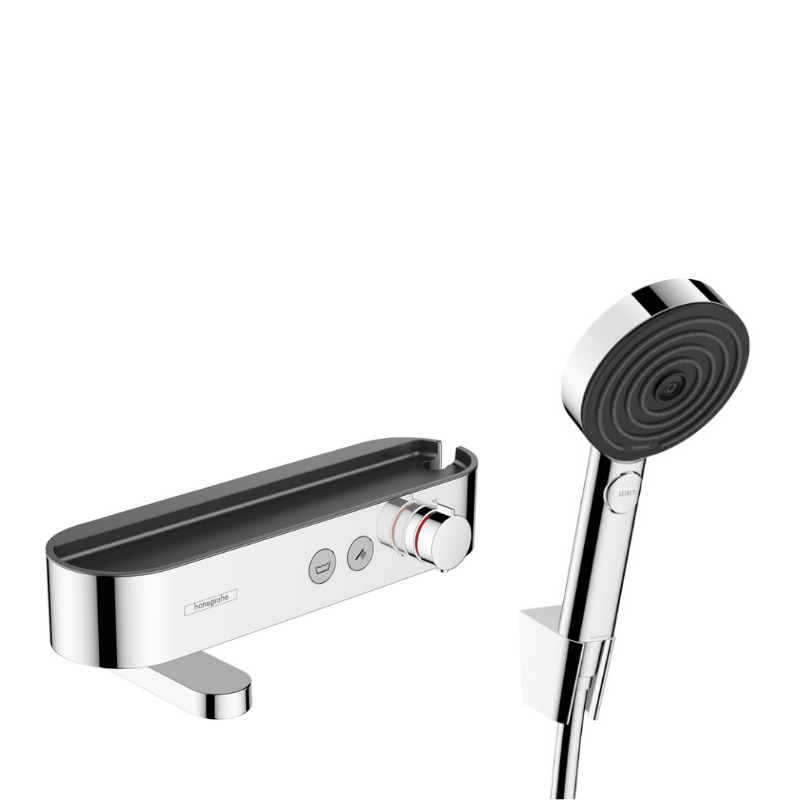 - Hansgrohe ShowerTablet Select Mitigeur thermostatique bain/douche 400 avec tablette et bec déverseur rotatif, Chrome (24340000)