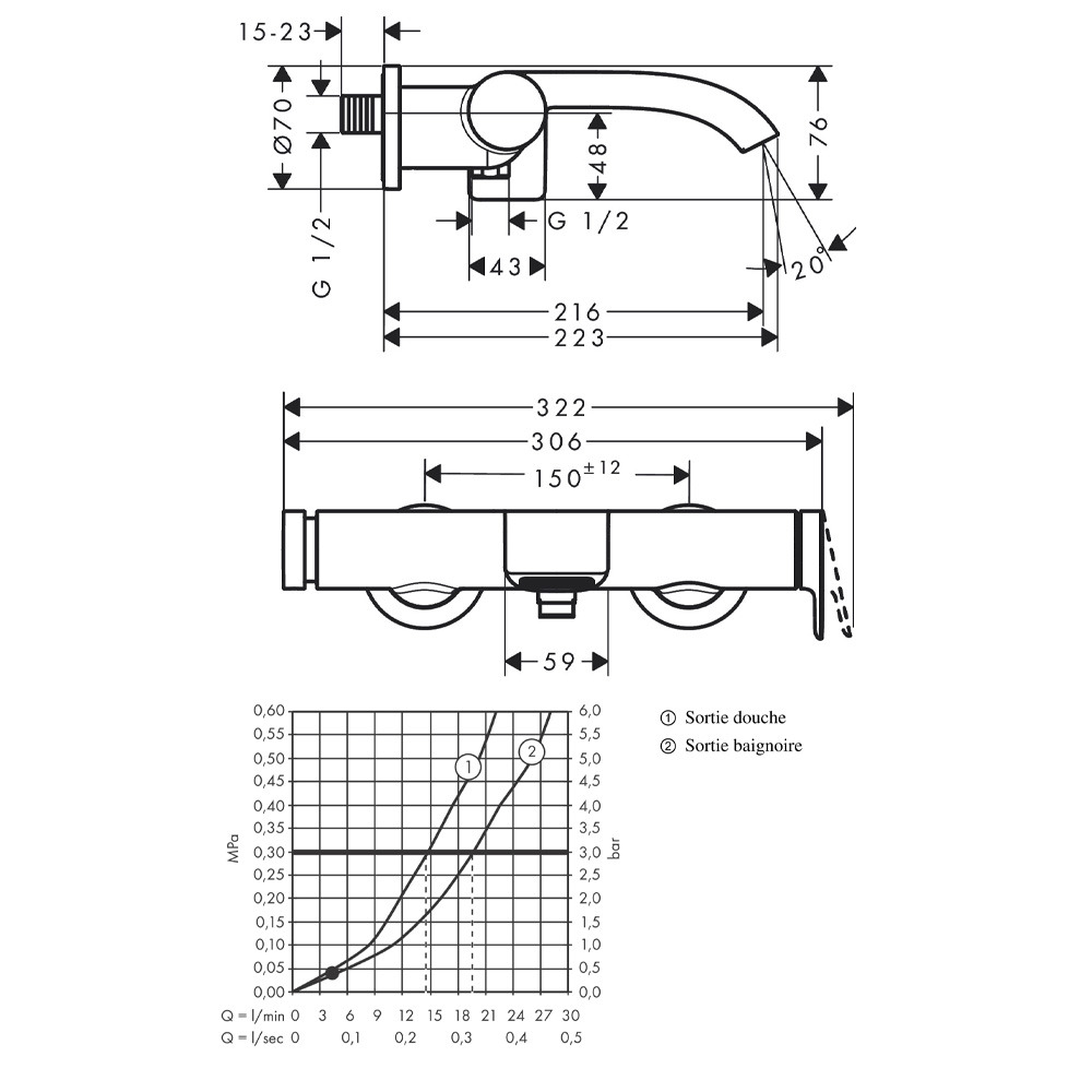 Hansgrohe Vivenis Mitigeur bain/douche, bec cascade, chrome (75420000) :