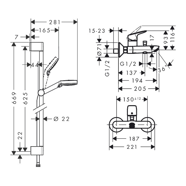 - Hansgrohe Logis Mitigeur bain/douche, Chrome (71400000)