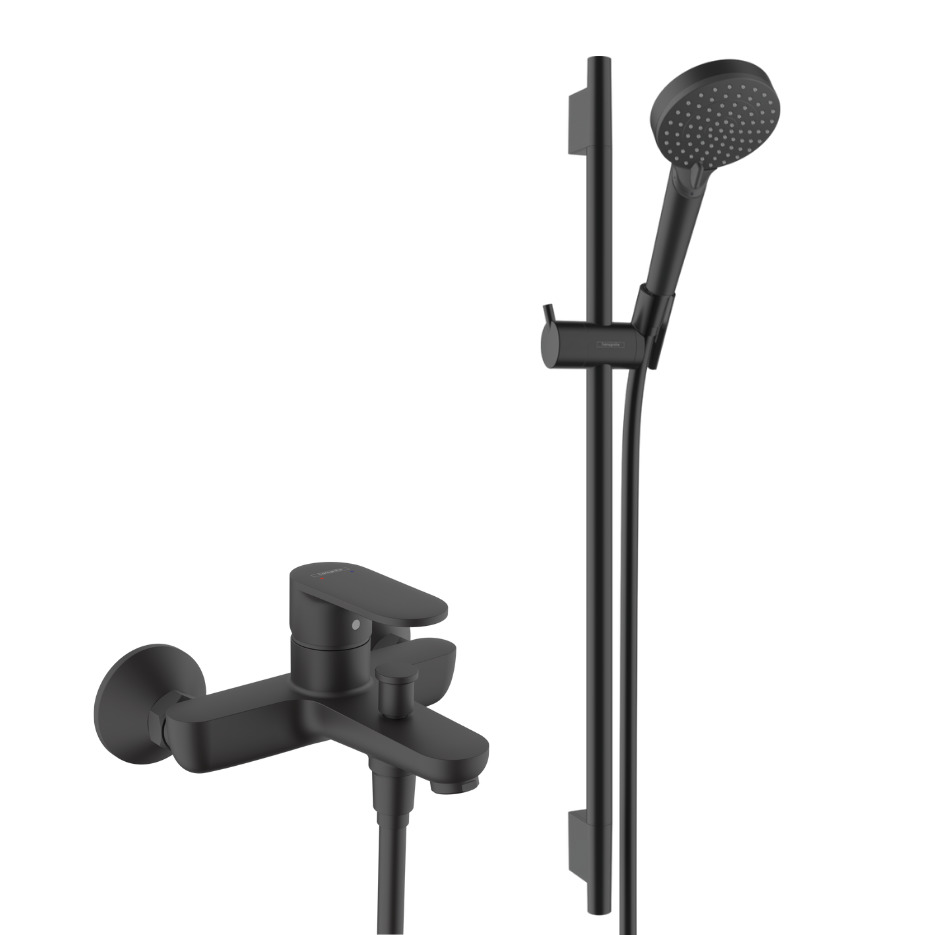 Hansgrohe Vernis Blend Set de douche mitigeur bain douche + Douchette à main 2 jets + Barre 65cm, Noir mat (71440670-Vernis-SP)
