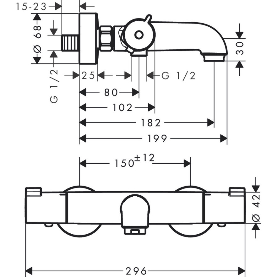 Caractéristiques du mitigeur thermostatique bain / douche Hansgrohe Ecostat 1001 CL :