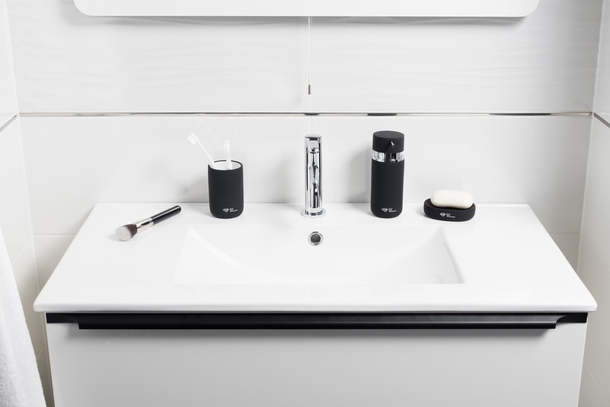 Swiss Aqua Technologies Set d'accessoires Infinitio Distributeur de savon, Porte savon, Gobelet, céramique Noir mat PackSAT-NoirMat