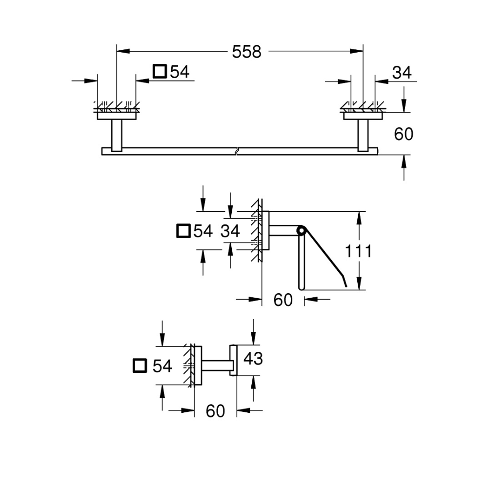 - Barre porte-serviettes, 558 mm (Référence : 41 089)