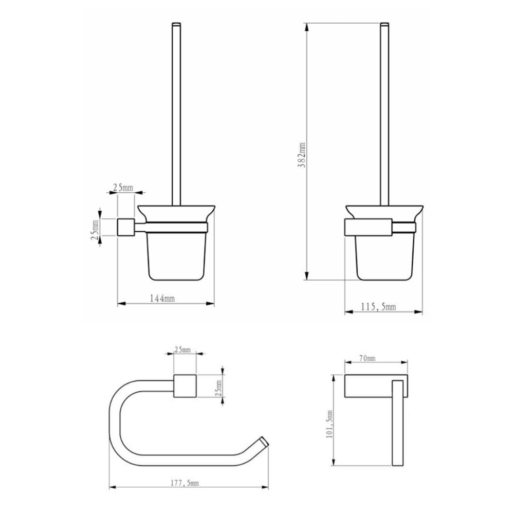 Caractéristiques du set de porte-papier toilette + brosse WC en verre dépoli, Element by Siko Multi, chrome (ELEMULTI-SET3) :