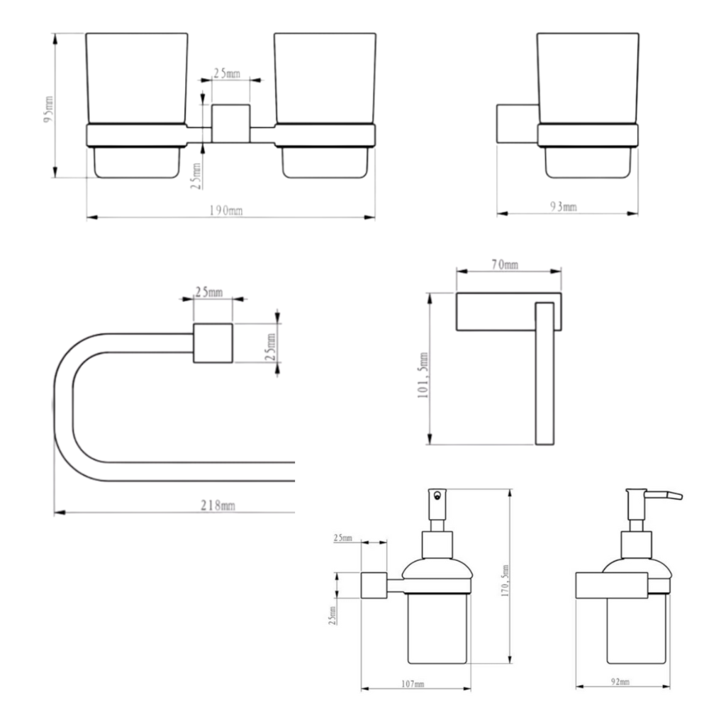 Caractéristiques du set double pot à brosse à dent + distributeur de savon en verre dépoli + porte-serviettes, Element (by Siko Multi), chrome (ELEMULTI-SET6) :