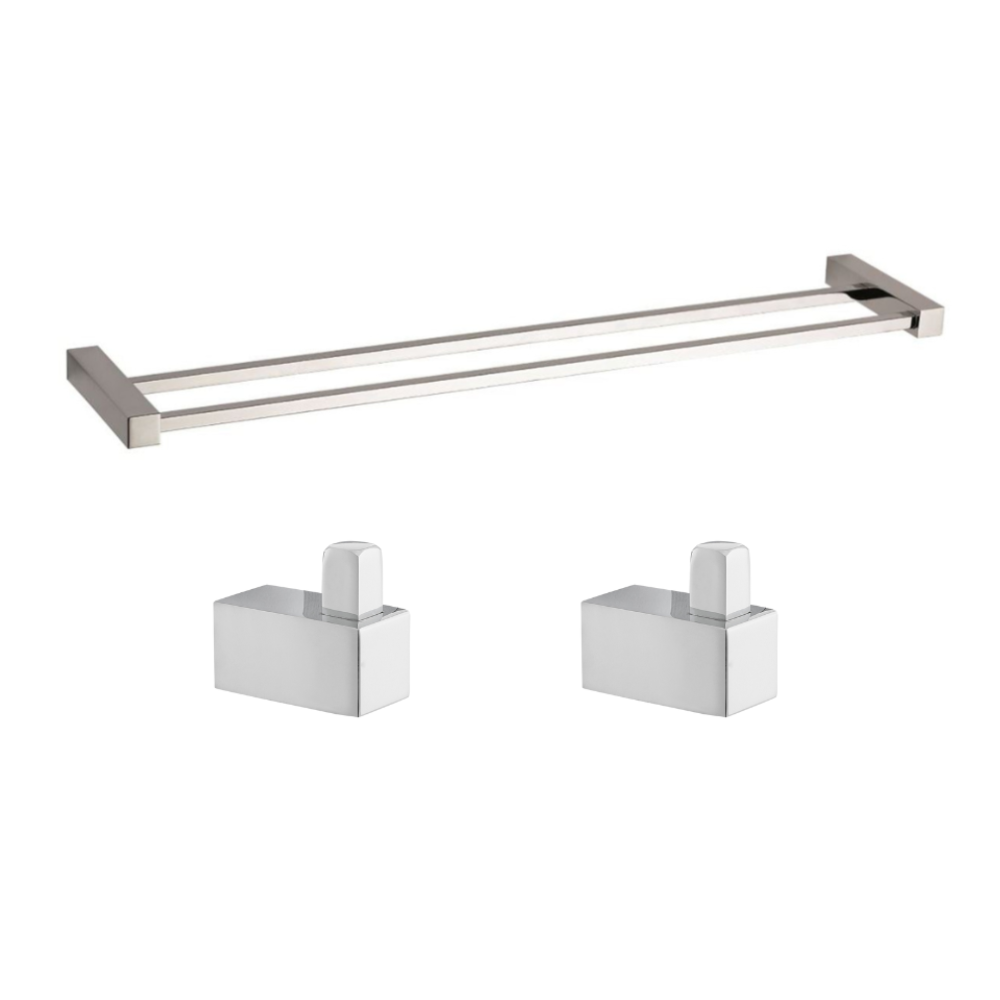 Siko Multi set de deux crochets de salle de bain + porte-serviettes 2 barres, longueur de 60 cm, chrome (ELEMULTI-SET8)