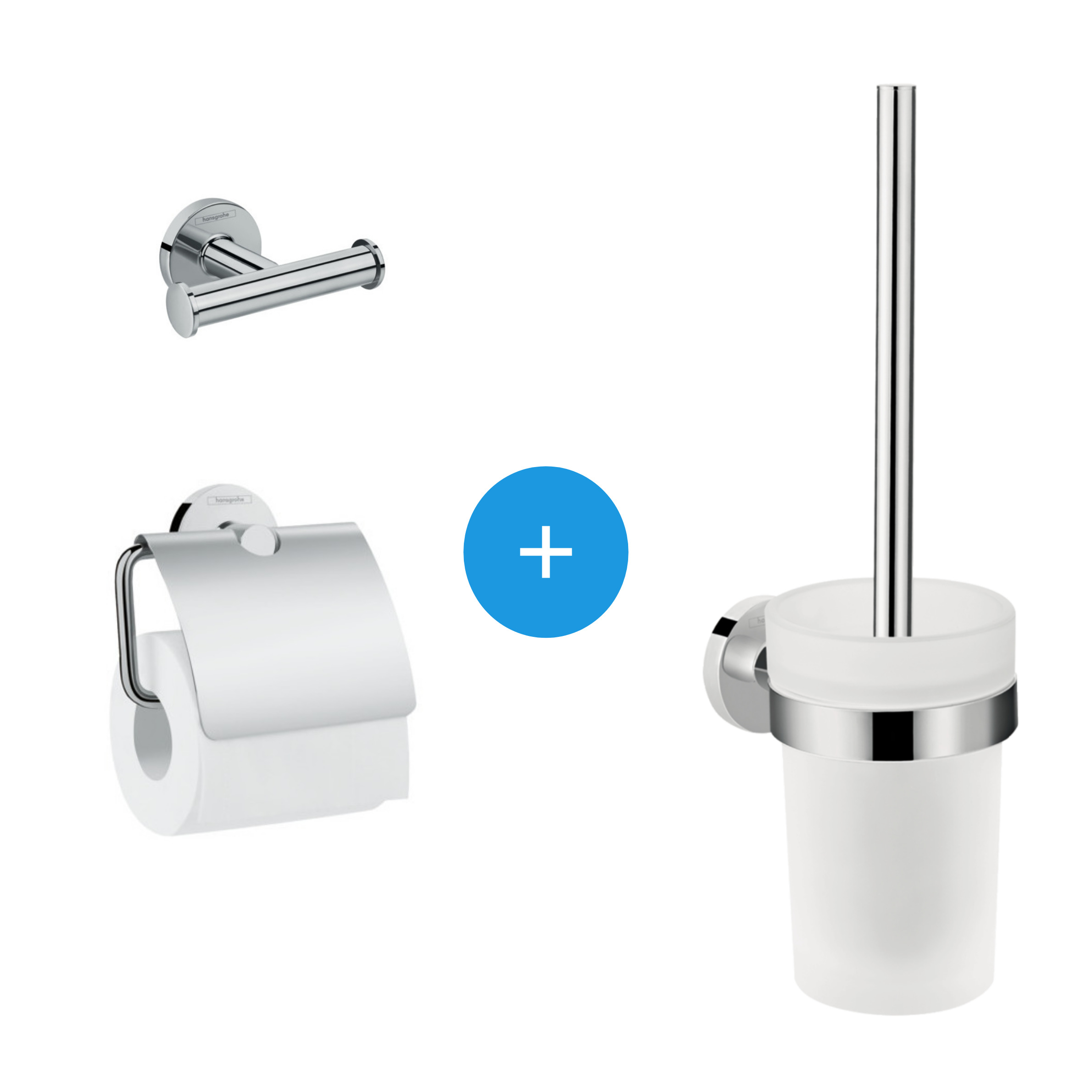 Hansgrohe Logis Universal Pack Brosse WC + Patère salle de bains + Porte-papier toilette, Chrome (41722000-TRIOLOGIS)