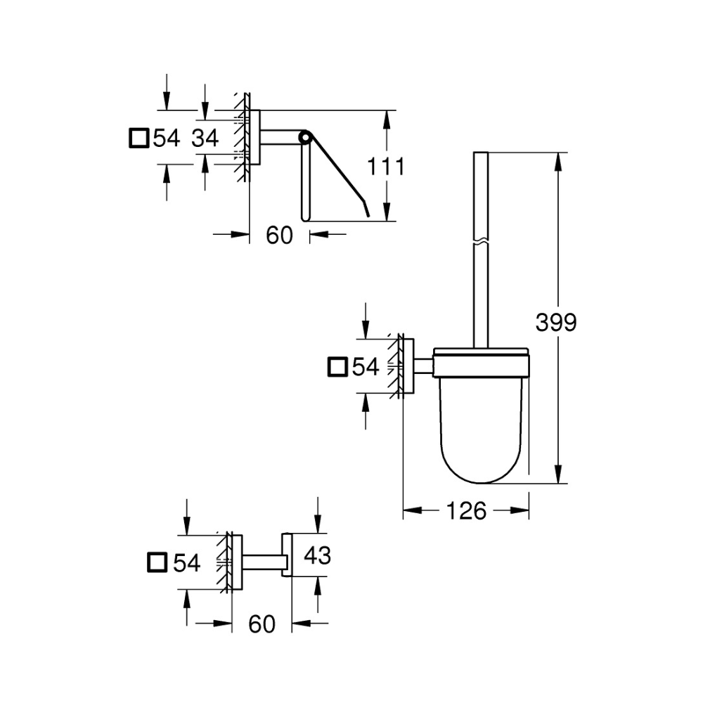 - Peut être vissé au mur (vis et chevilles incluses) ou collé (commander séparément 3 x colle GROHE QuickGlue A1 (Référence : 41 127 000)