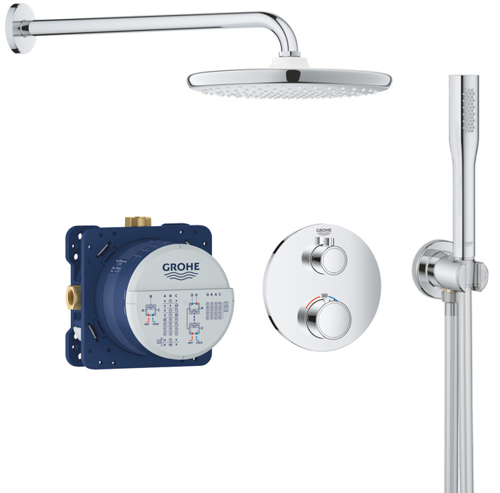 Caractéristiques du Set de douche encastré avec mitigeur thermostatique, douche de tête XXL 250 et douchette, Chrome, Grohe Grohtherm (34727000-XXL2) :