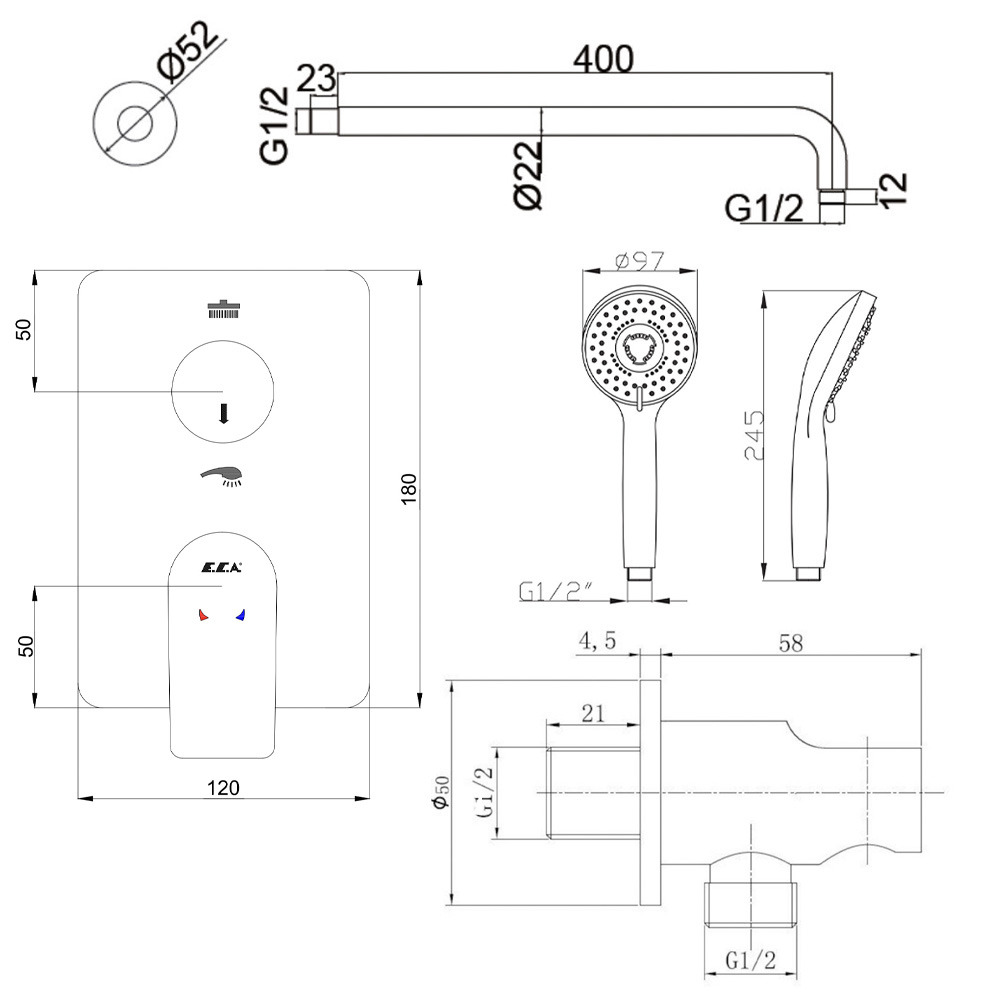 - Diamètre douche de tête (mm):22.5