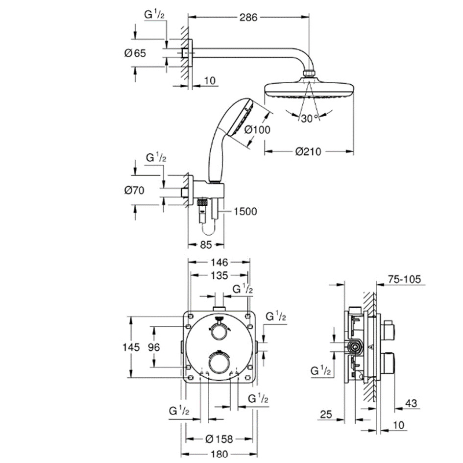 Grohe PRECISION TREND Set de douche encastré, douche de tête 210mm + douchette 2 jets, Chrome (34733002)