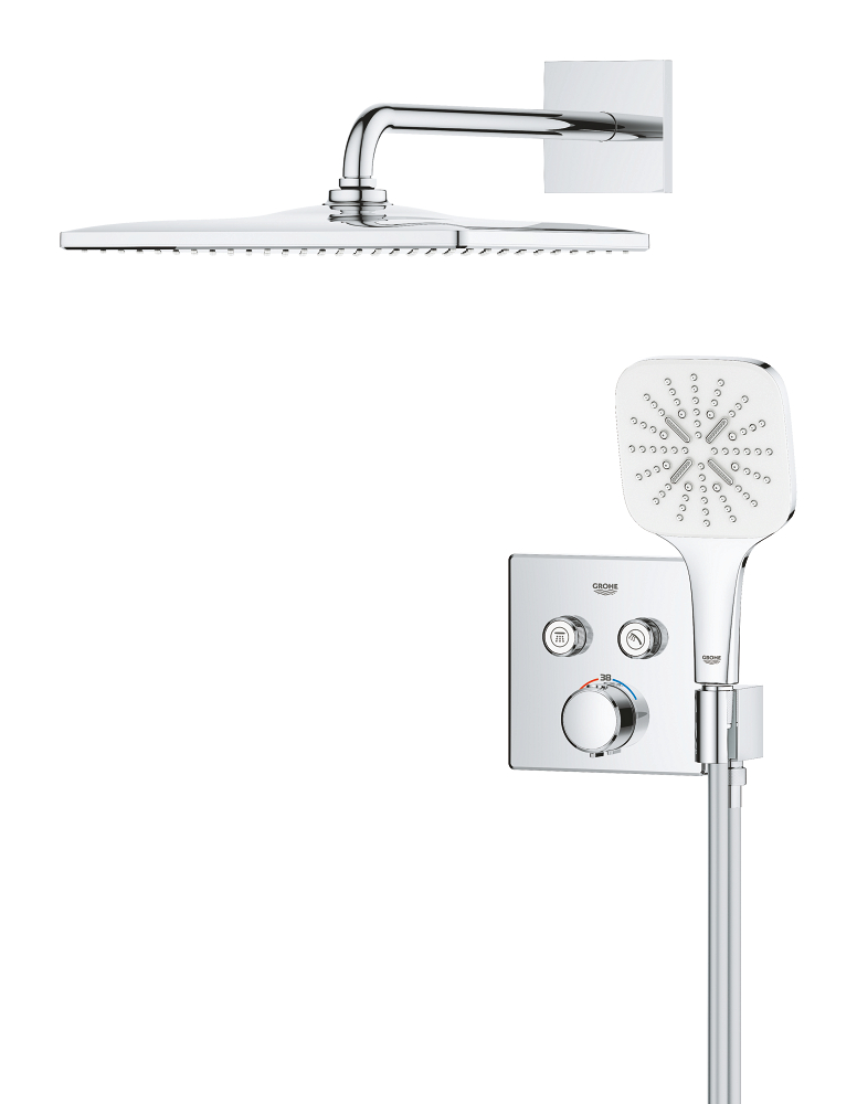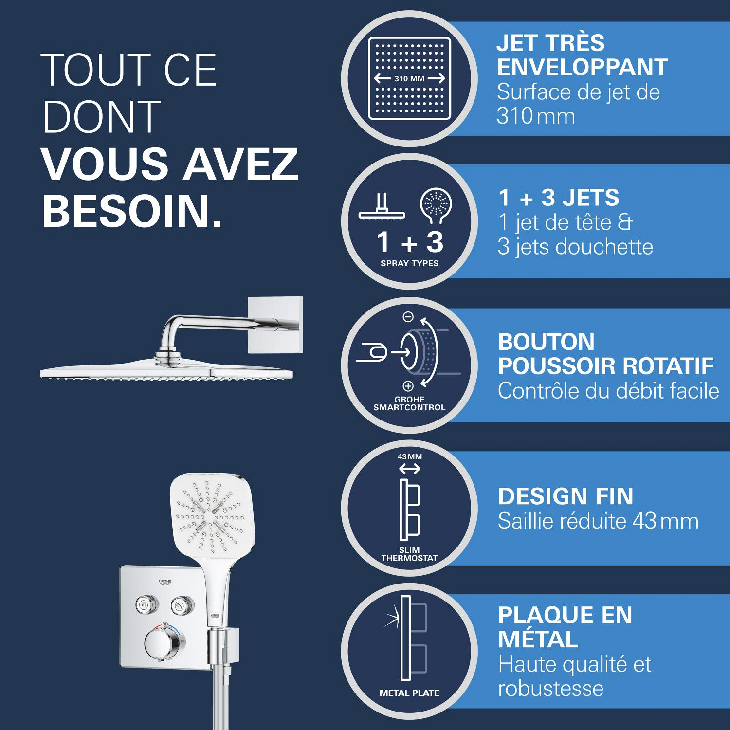 Grohe Precision SmartControl Set de douche encastrée façade thermostatique + Douche de tête + Douchette 3 jets, chrome (G34876000)