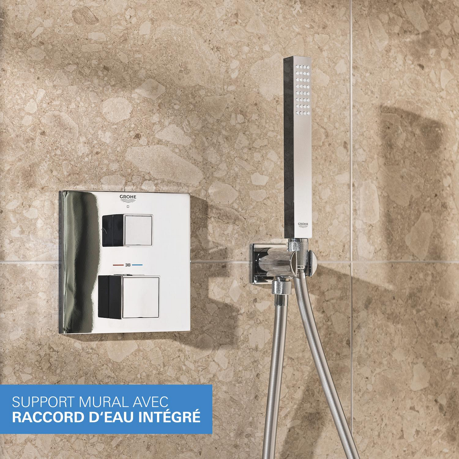 Caractéristiques du Set de douche encastrée avec mitigeur thermostatique + Douche de tête + Douchette, chrome Grohe Precision Cube (G34879000) :