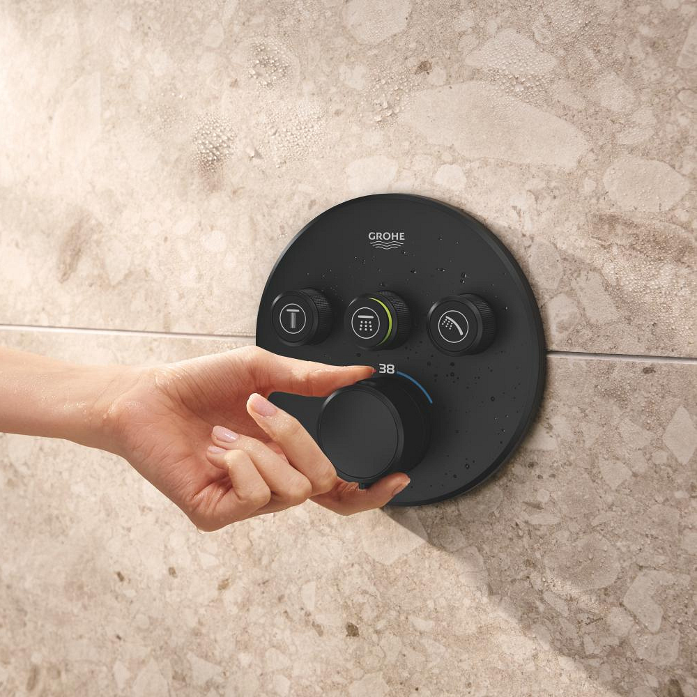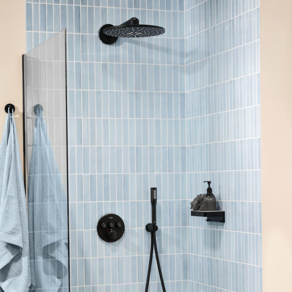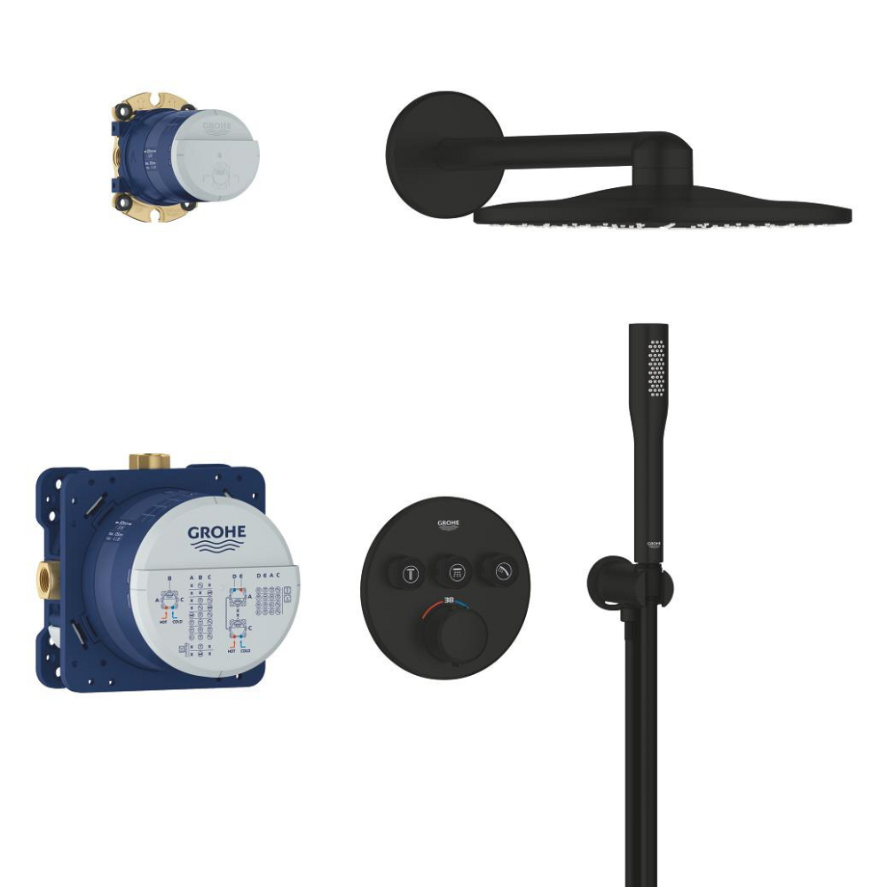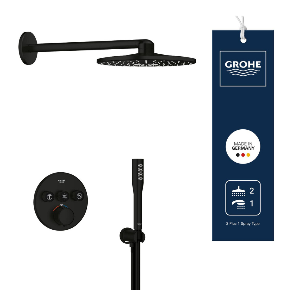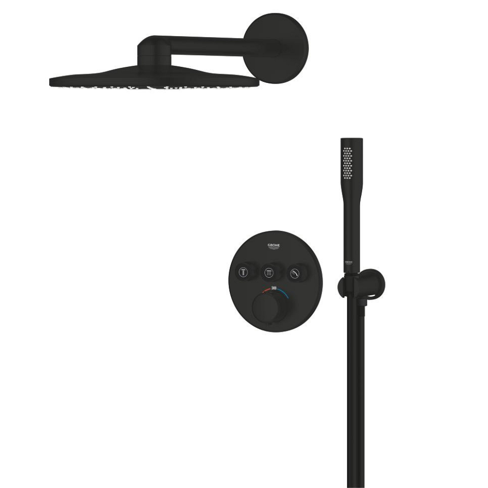 Grohe Precision SmartControl set de douche encastré 2 jets avec mitigeur thermostatique, tête ronde Ø 31 cm, noir mat (348742430)