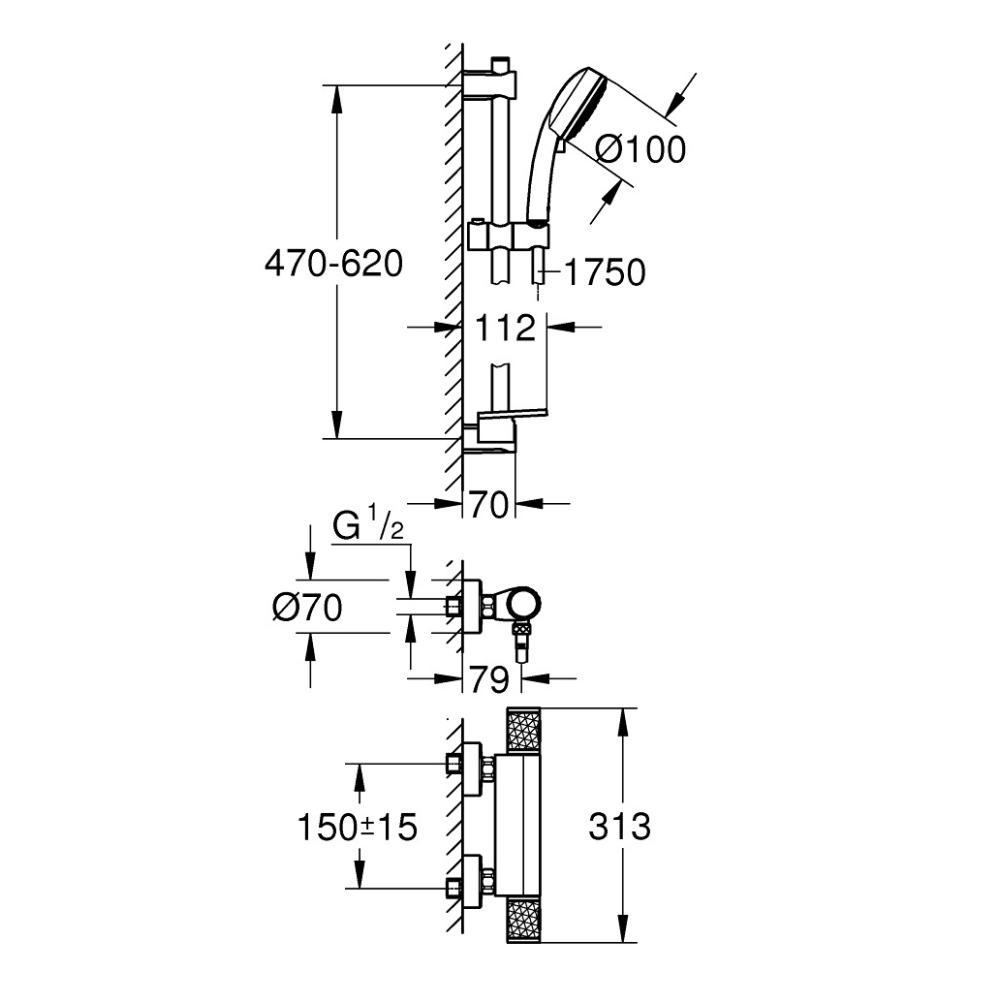 Grohe Precision Feel ensemble de douche thermostatique avec douchette 3 jets (34791000)
