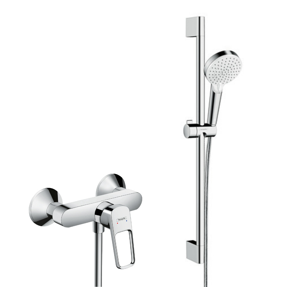 Hansgrohe Set de douche Logis Loop Mitigeur de douche + Douchette 2 jets + Barre de douche 65cm + Flexible, Chrome 71247000-Crometta