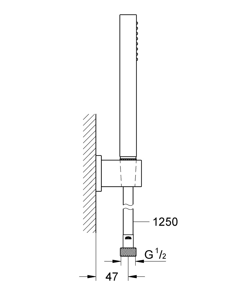 Caractéristiques du Set de douche Mitigeur thermostatique Grohtherm + Douchette Stick 1 jet, support mural, flexible, Chrome (34558000-CUBESTICK) :