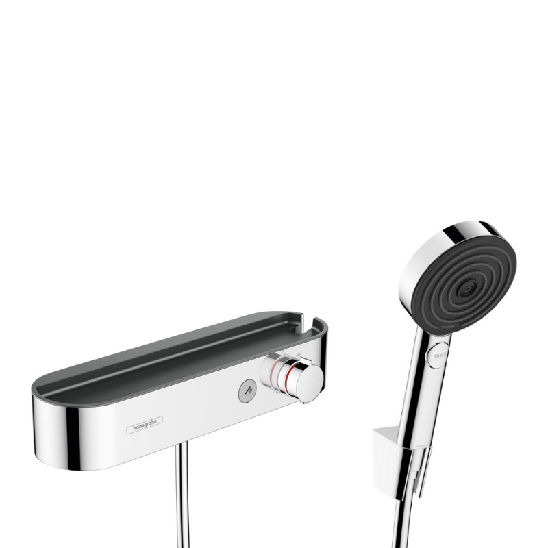 Hansgrohe ShowerTablet Select Set Mitigeur thermostatique douche + Douchette 105mm 3 jets + Flexible douche 125cm + Support mural, Chrome