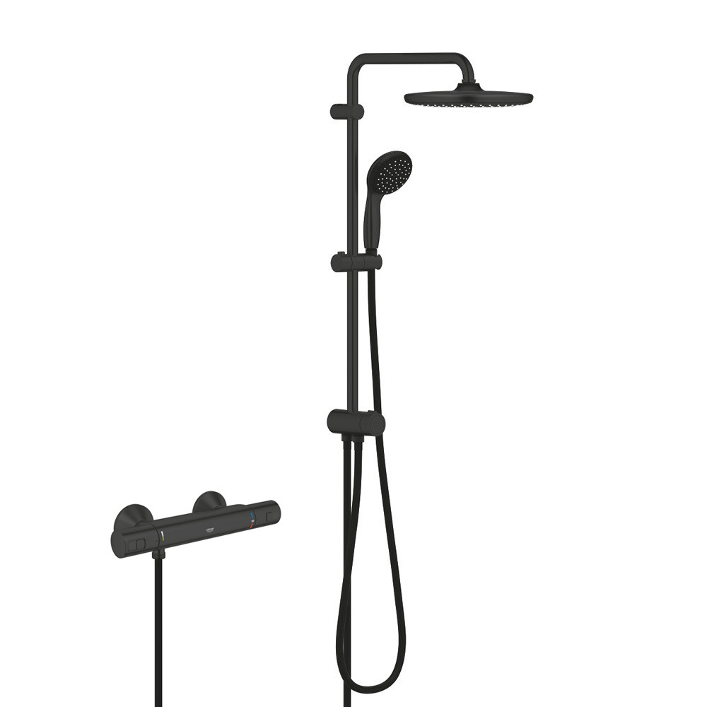 Grohe Set Vitalio start system 250 mitigeur thermostatique + colonne de douche, tête de douche XXL 250 mm + Douchette 1 jets, noir mat