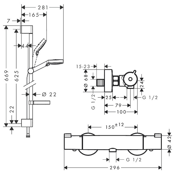 Caractéristiques du pack Ecostat Mitigeur Thermostatique + Set de douche Crometta Vario avec porte-savon (13211000-Crometta2-SP) :