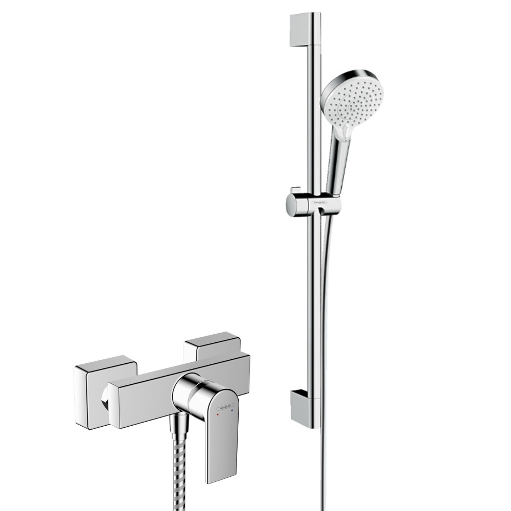 Hansgrohe Vernis Shape Pack Mitigeur de douche + Set de douche Crometta Vario 0,65m, blanc/chromé (71650000-Crometta)