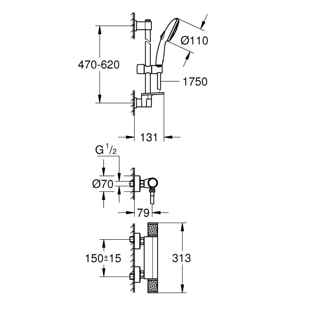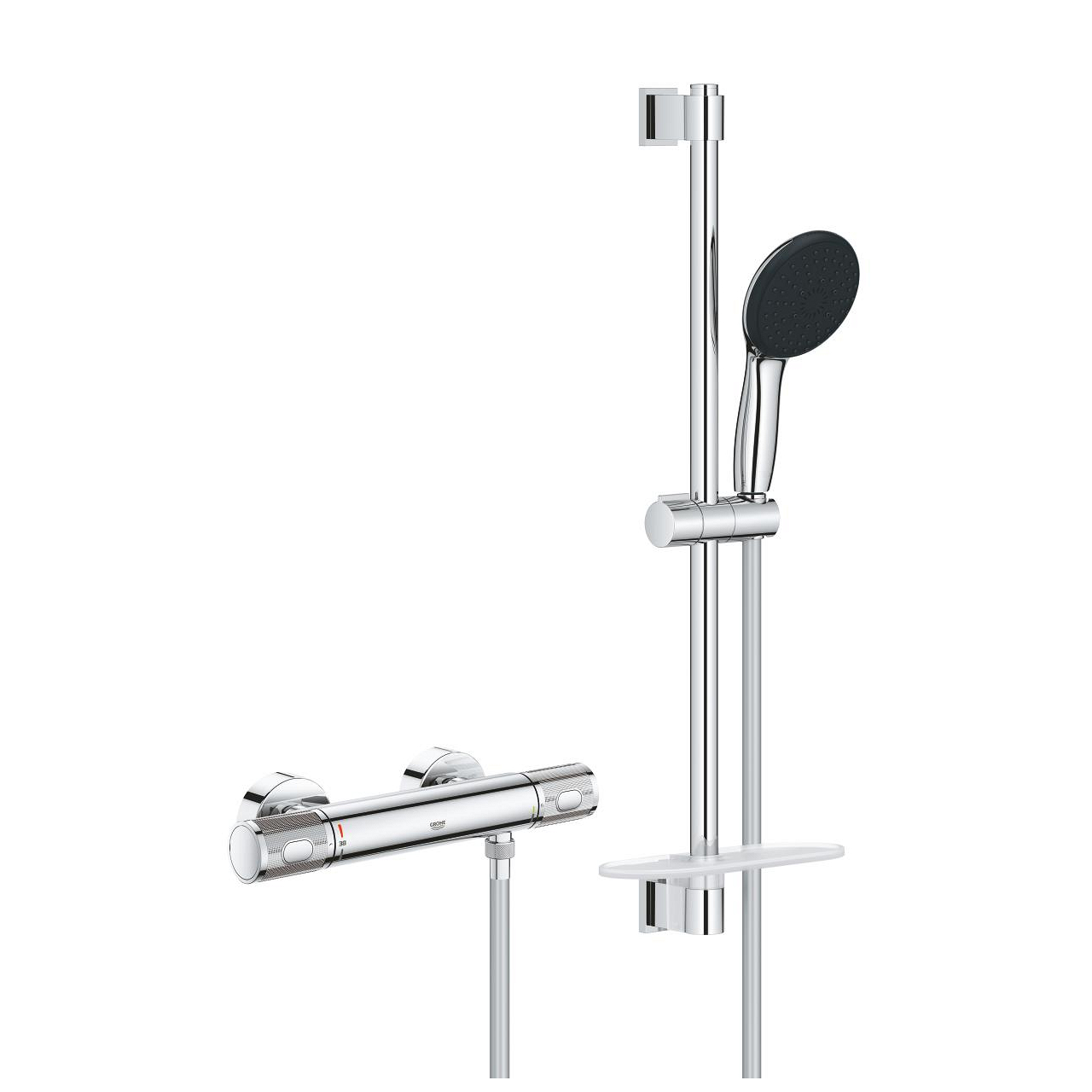 Grohe Precision Feel Set de douche avec mitigeur thermostatique + Douchette 3 jets + Barre 60 cm, chrome (G34791001)