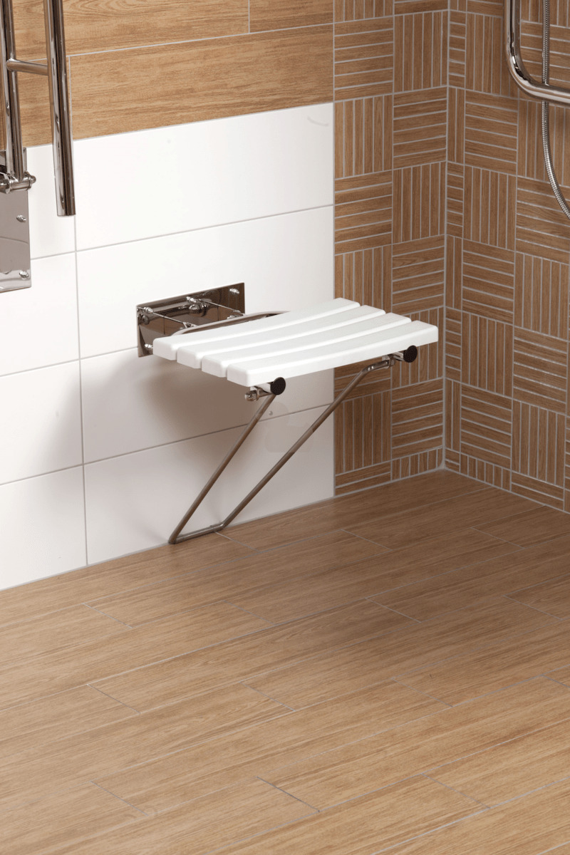 BEMETA Help Siège de douche rabattable avec jambe de sécurité en Acier inoxydable, Blanc (301102181)