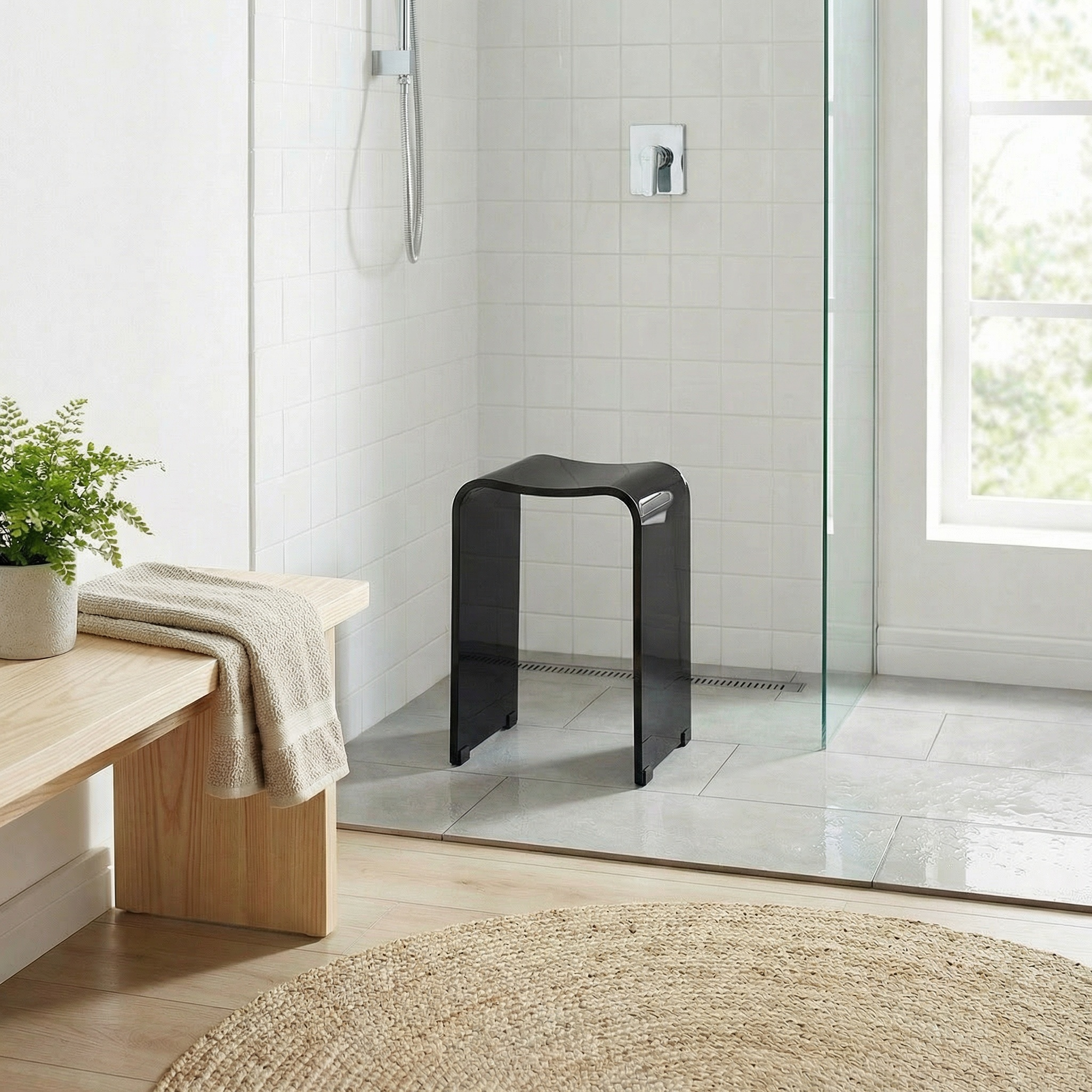 L’ouverture intégrée dans l’assise permet une prise en main facile pour déplacer le tabouret sans effort. Son design discret, sans aspect médical, s’intègre naturellement dans la salle de bain ou la douche, aussi bien dans un logement privé que dans des espaces accessibles PMR, afin de préserver l’autonomie au quotidien.