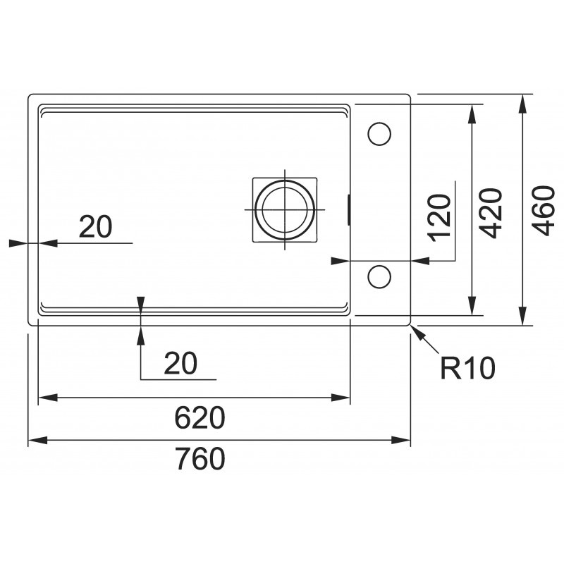 - Dimensions de l'évier: 760 x 460 mm
