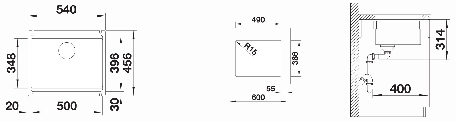 Blanco Evier Etagon 500-U en Céramique PuraPlus sous-plan 54x45.6cm, Blanc cristal (525149)