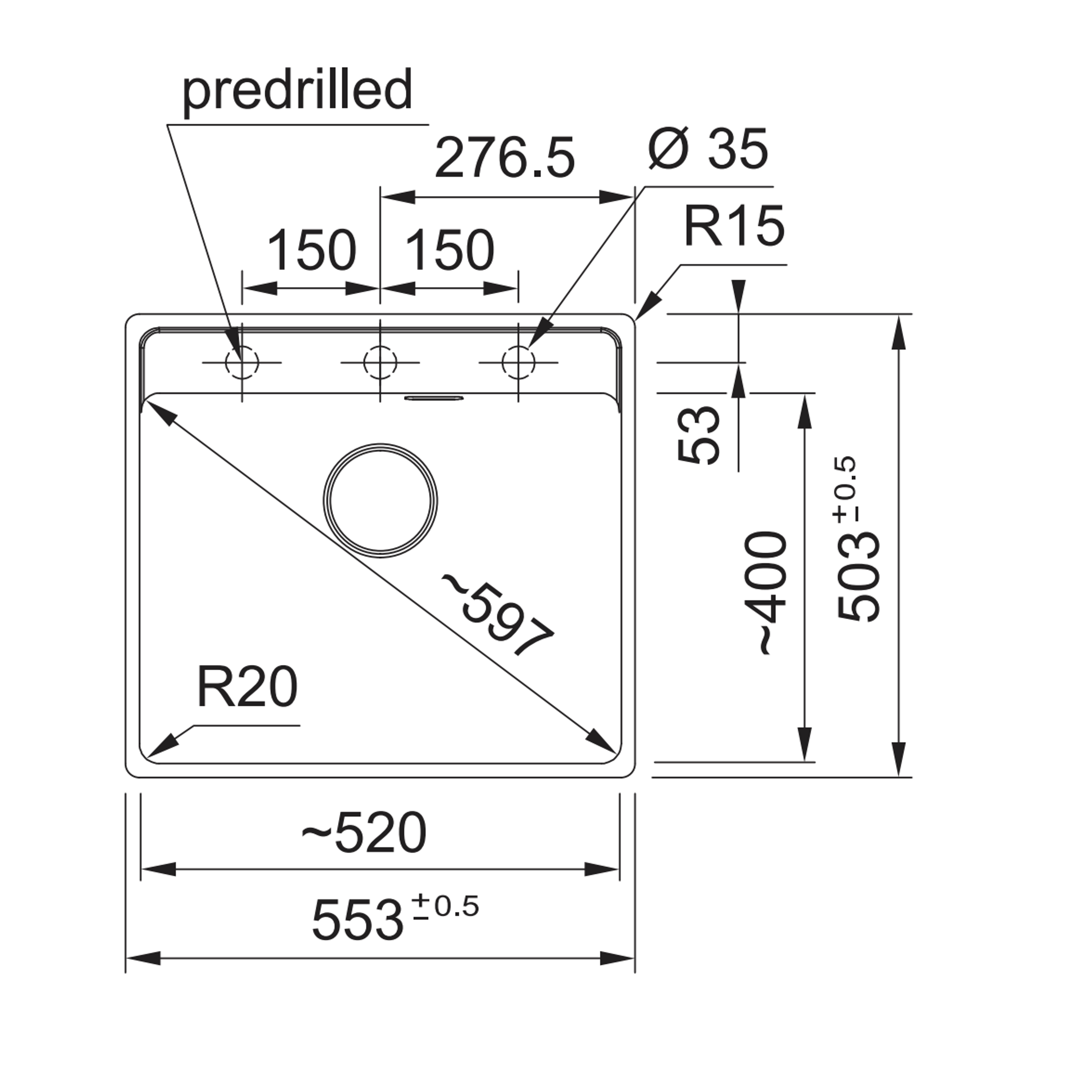 - Dimensions du bac évier : 520 x 400 x 200 mm