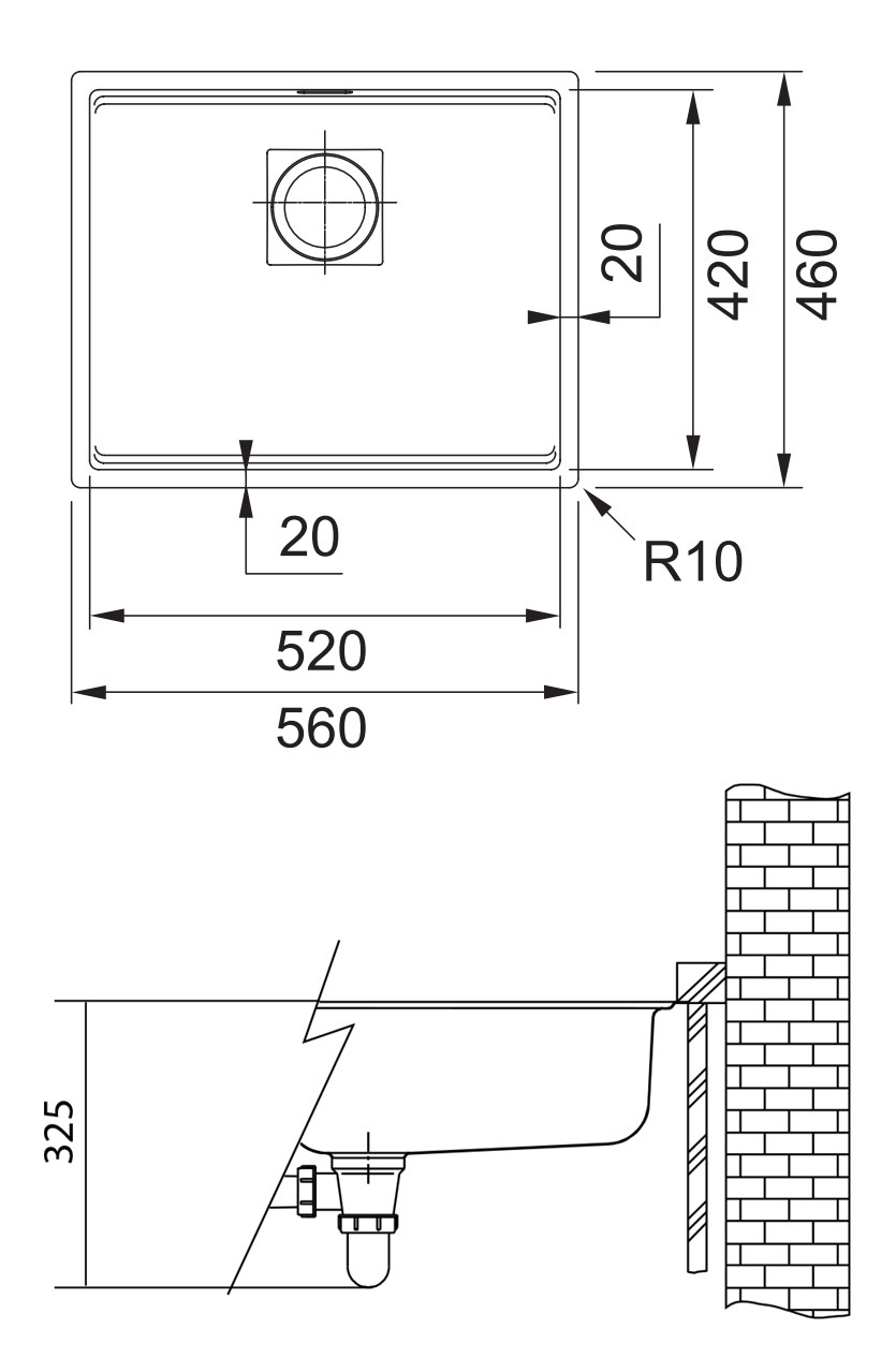 Caractéristiques de l'évier sous plan Franke Kubus 2 KNG 110-52 Fragranit+ Onyx (125.0512.504)