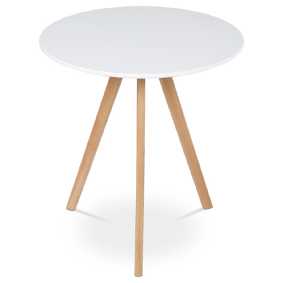Caractéristiques de la table ronde de salle à manger en MDF vernis blanc mat 75x70x70 cm, design scandinave, pieds en bois de hêtre massif, Autronic (DT320WT) :