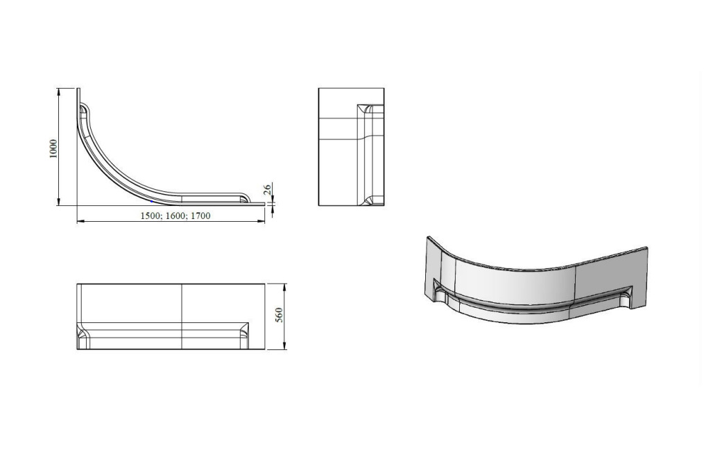 Caractéristiques du Tablier pour baignoire 160cm en acrylique, Blanc, Siko Laguna Fortuna Plus (FOP1600L) :