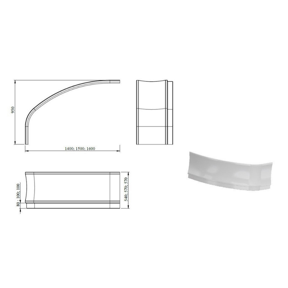 Caractéristiques du Tablier de baignoire en acrylique, 140cm, orientation à gauche, Blanc, Laguna Luiza (LUP1400L) :