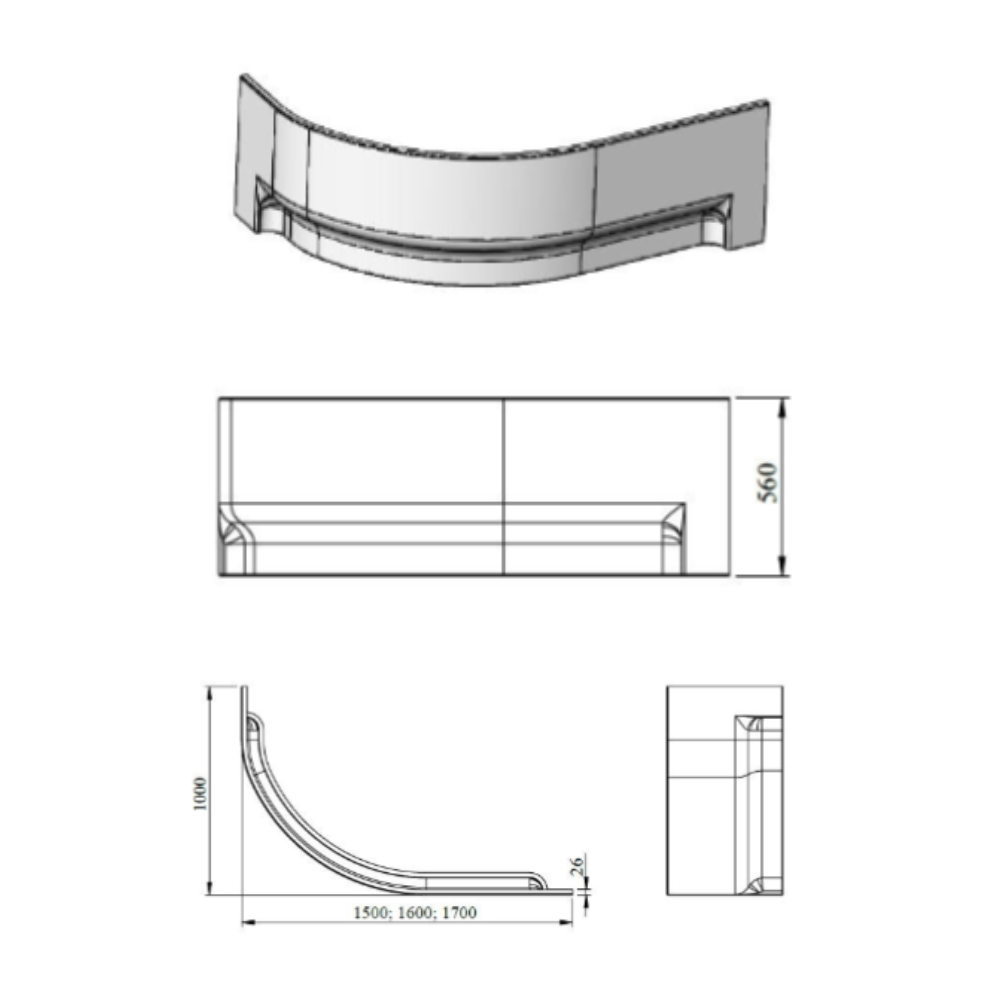 Caractéristiques du tablier de baignoire 170 cm en acrylique, orientation gauche, Siko Laguna Fortuna, blanc (FOP1700L) :