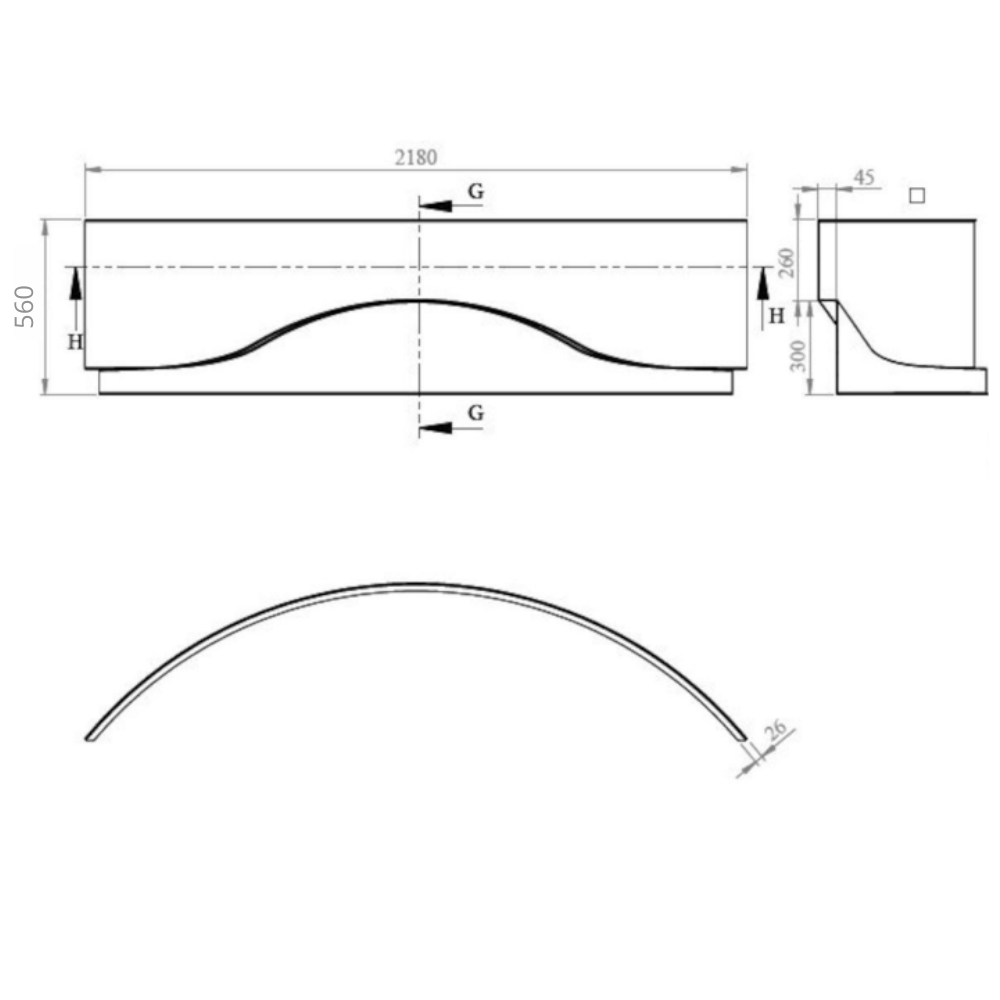 - Dimensions : 2180 x 560 mm